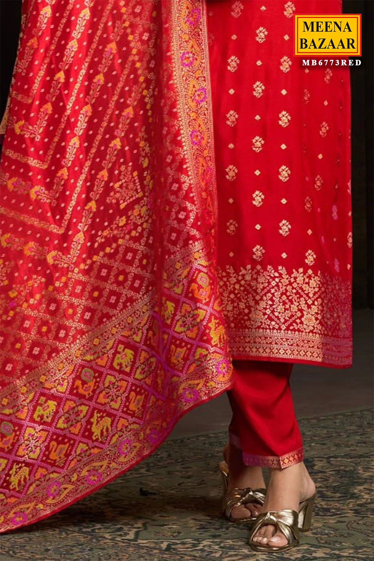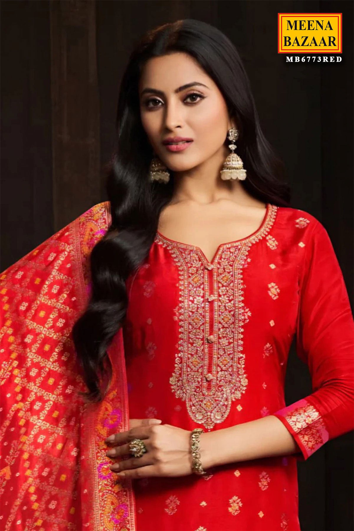 Make a bold and beautiful statement with this red silk ready-made suit, crafted for elegance and festive charm. The rich silk fabric offers a luxurious sheen, while the intricate neck embroidery enhances the outfit with a touch of traditional artistry. Perfect for weddings, festivals, and special celebrations, this suit delivers both comfort and sophistication. Pair it with gold jewellery for a classic, timeless ethnic look.