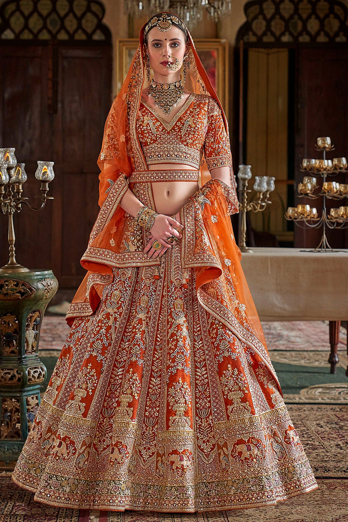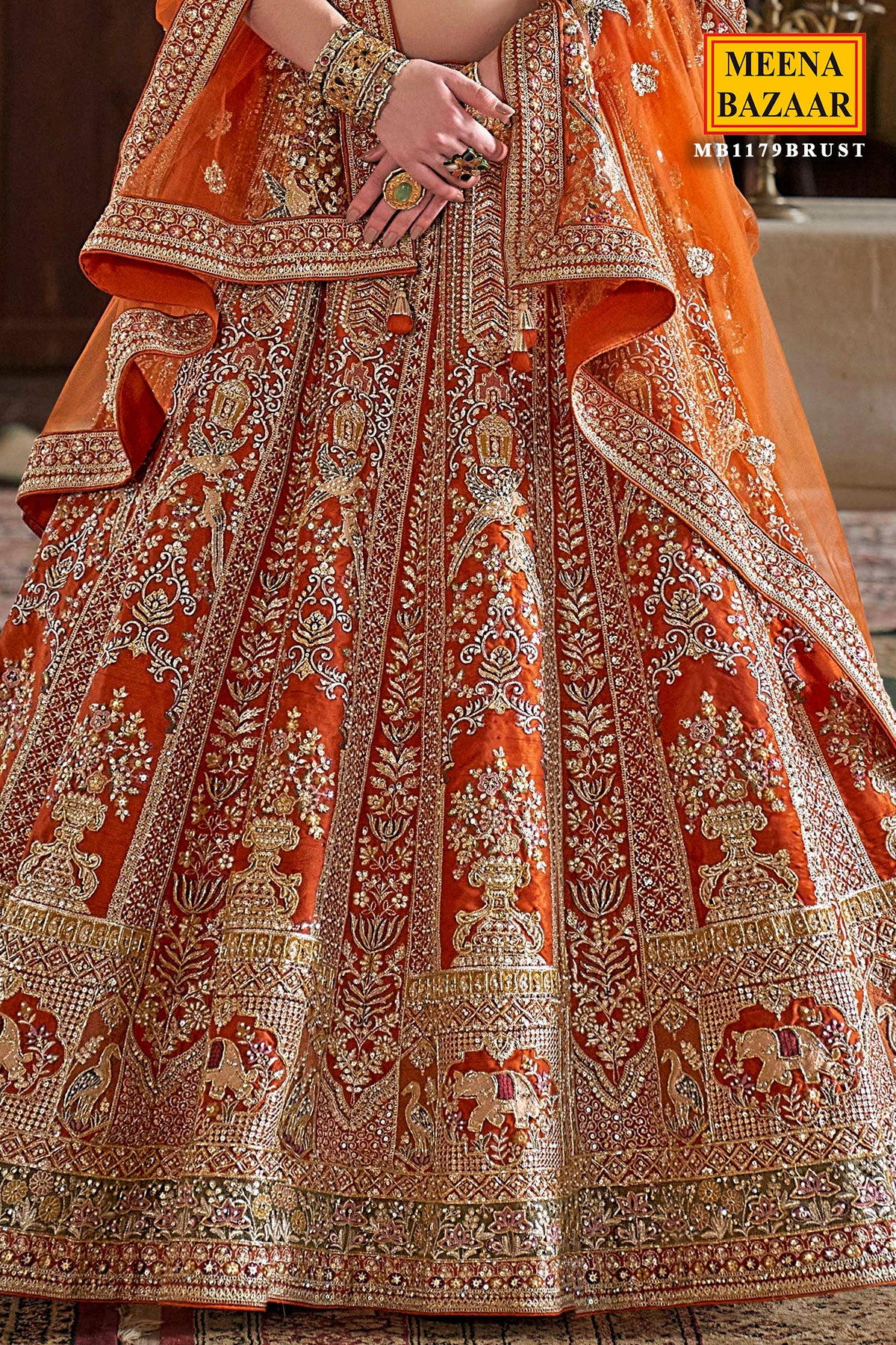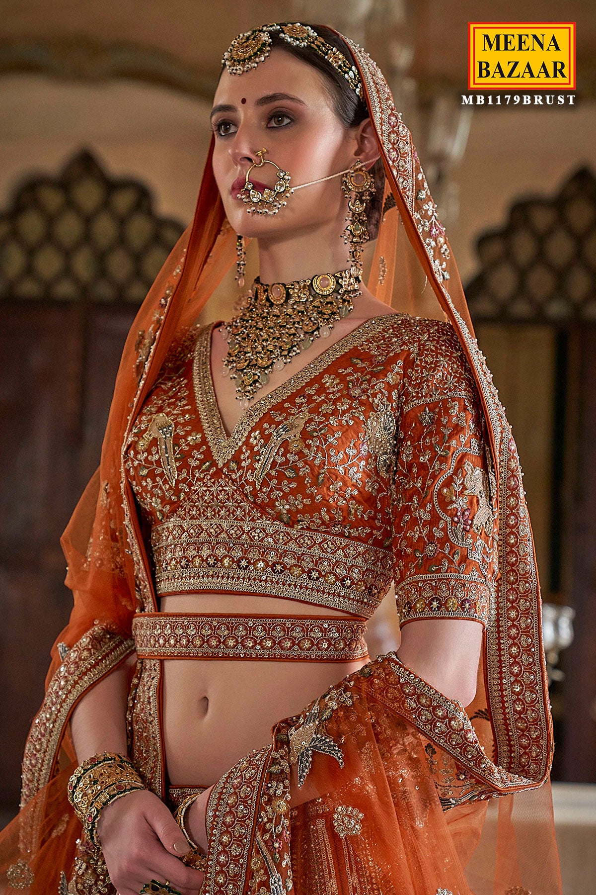 Rust Silk Zari and Sequin Embroidered Bridal Lehenga – Luxurious Wedding Wear