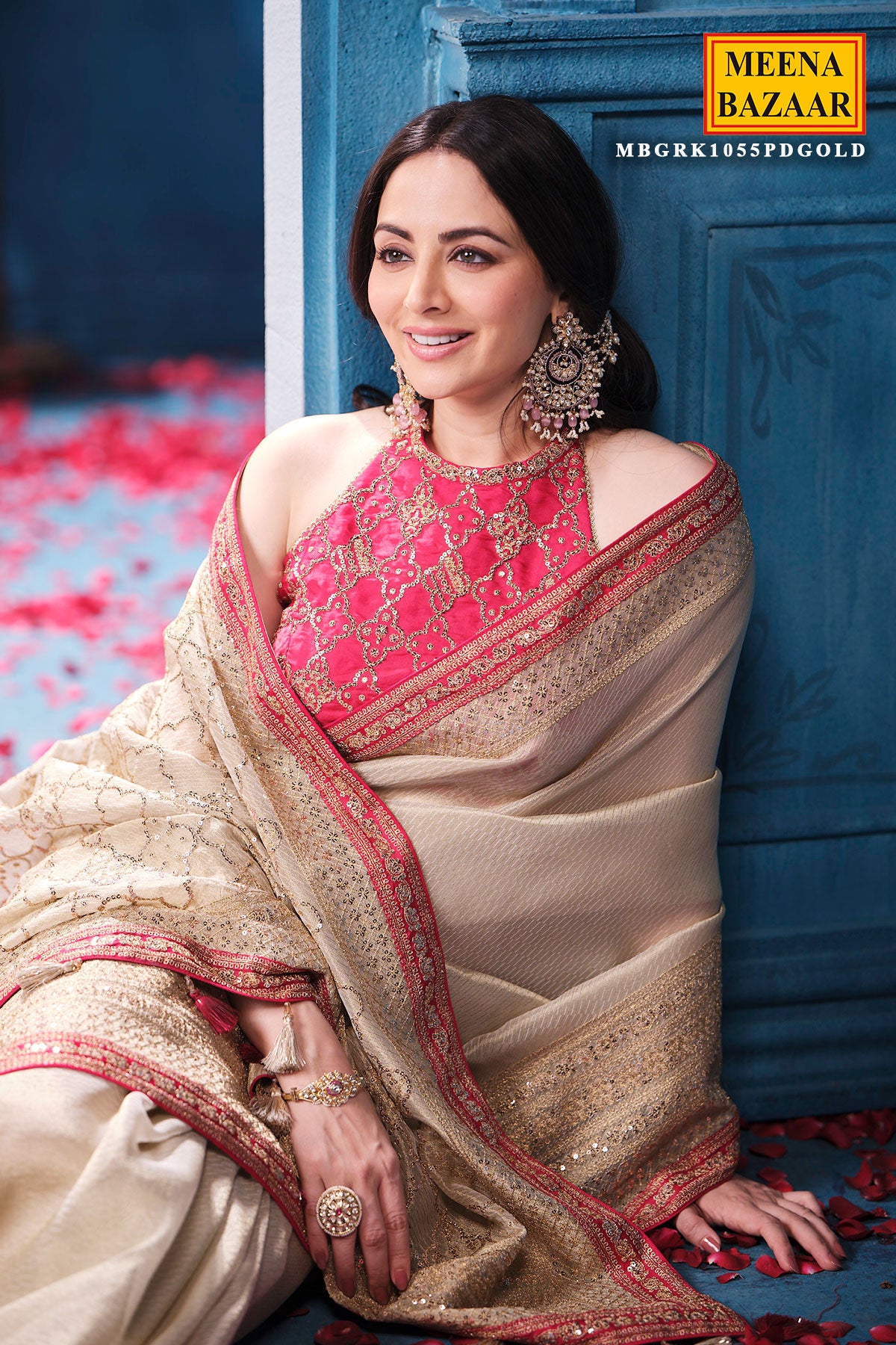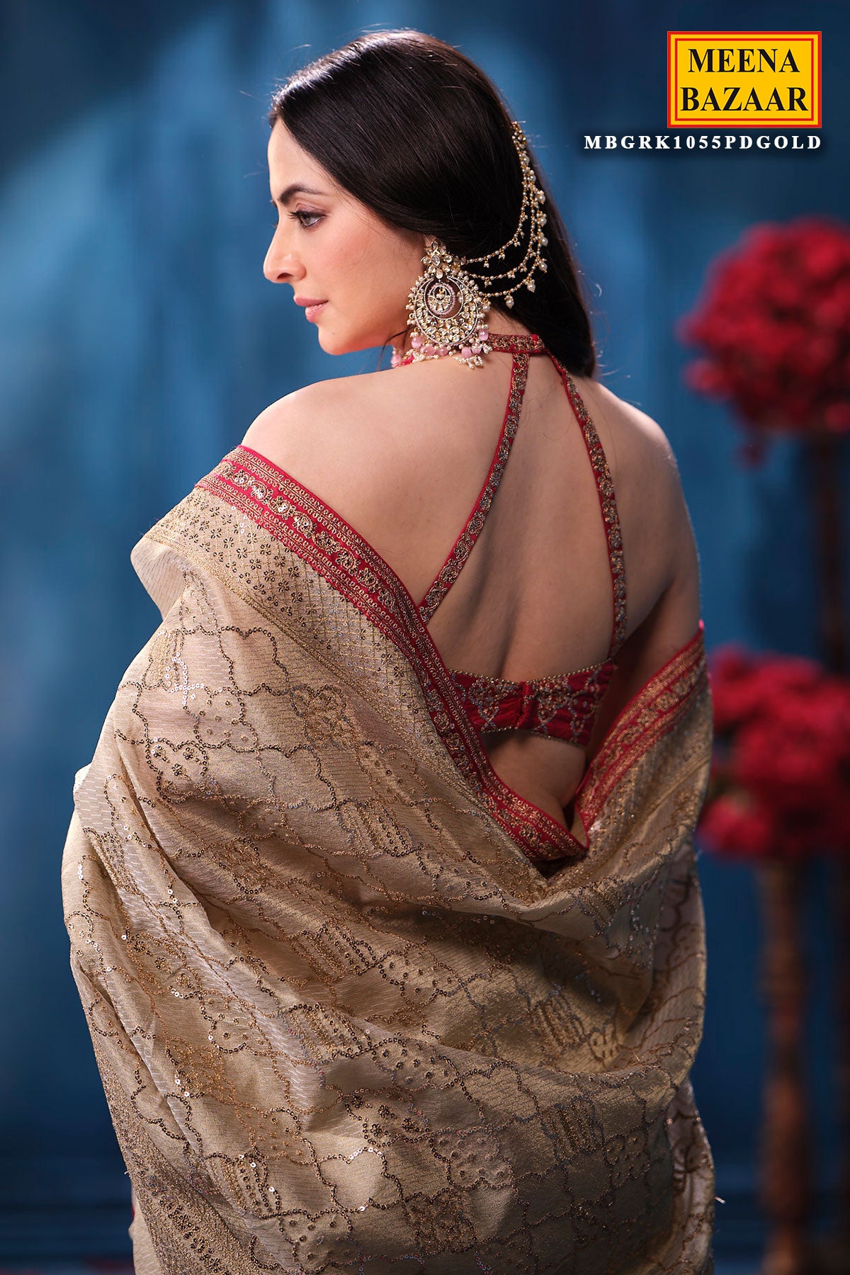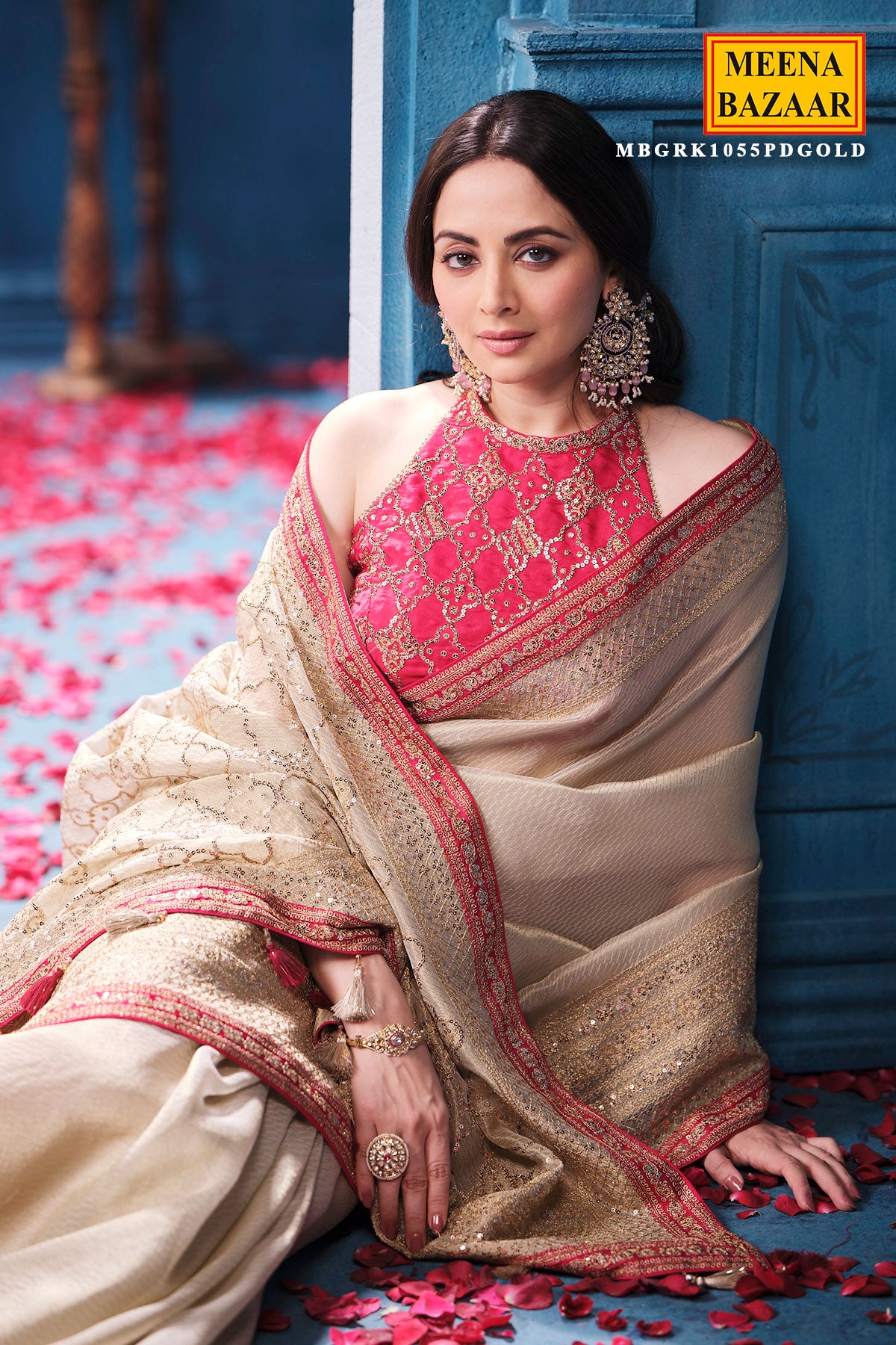 This is a Gold & Rani Tissue Saree from Meena Bazaar. Crafted from premium tissue fabric, this saree features a delicate sheen that enhances its rich and graceful appeal. The beautiful blend of gold and rani hues creates a regal contrast, making it a perfect choice for weddings, festive celebrations, receptions, poojas, and grand occasions. Lightweight and airy, the tissue fabric drapes effortlessly, offering both comfort and sophistication. This designer tissue saree comes with matching unstitched blouse fabric, allowing you to customise your blouse style. Pair it with traditional jewellery to complete a timeless and elegant ethnic look.