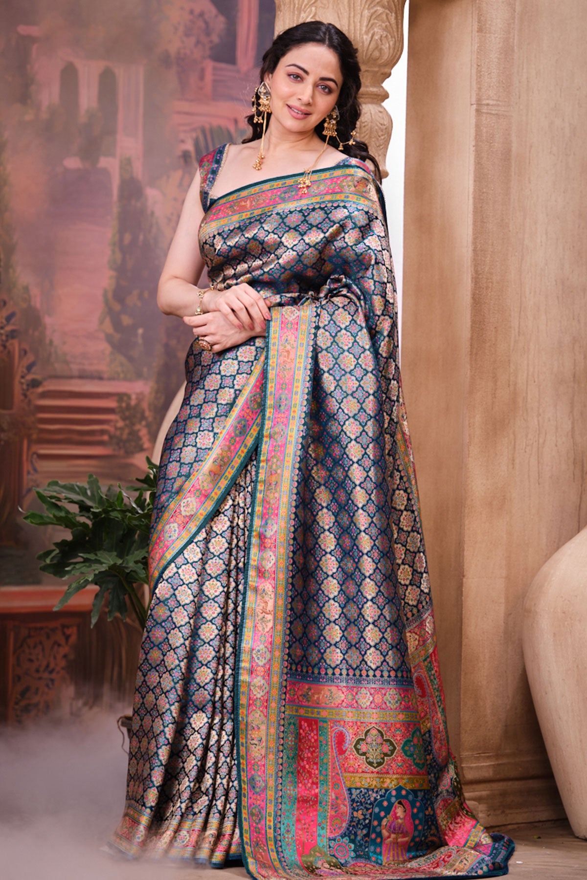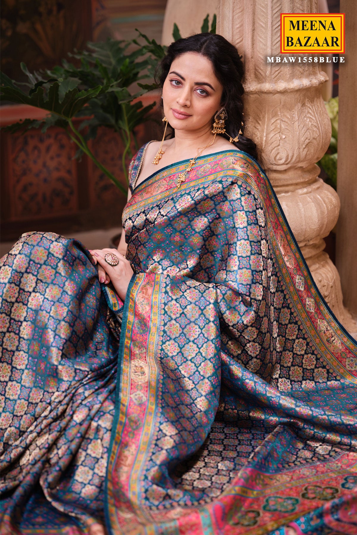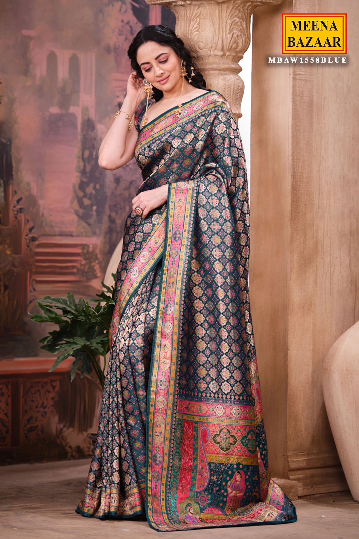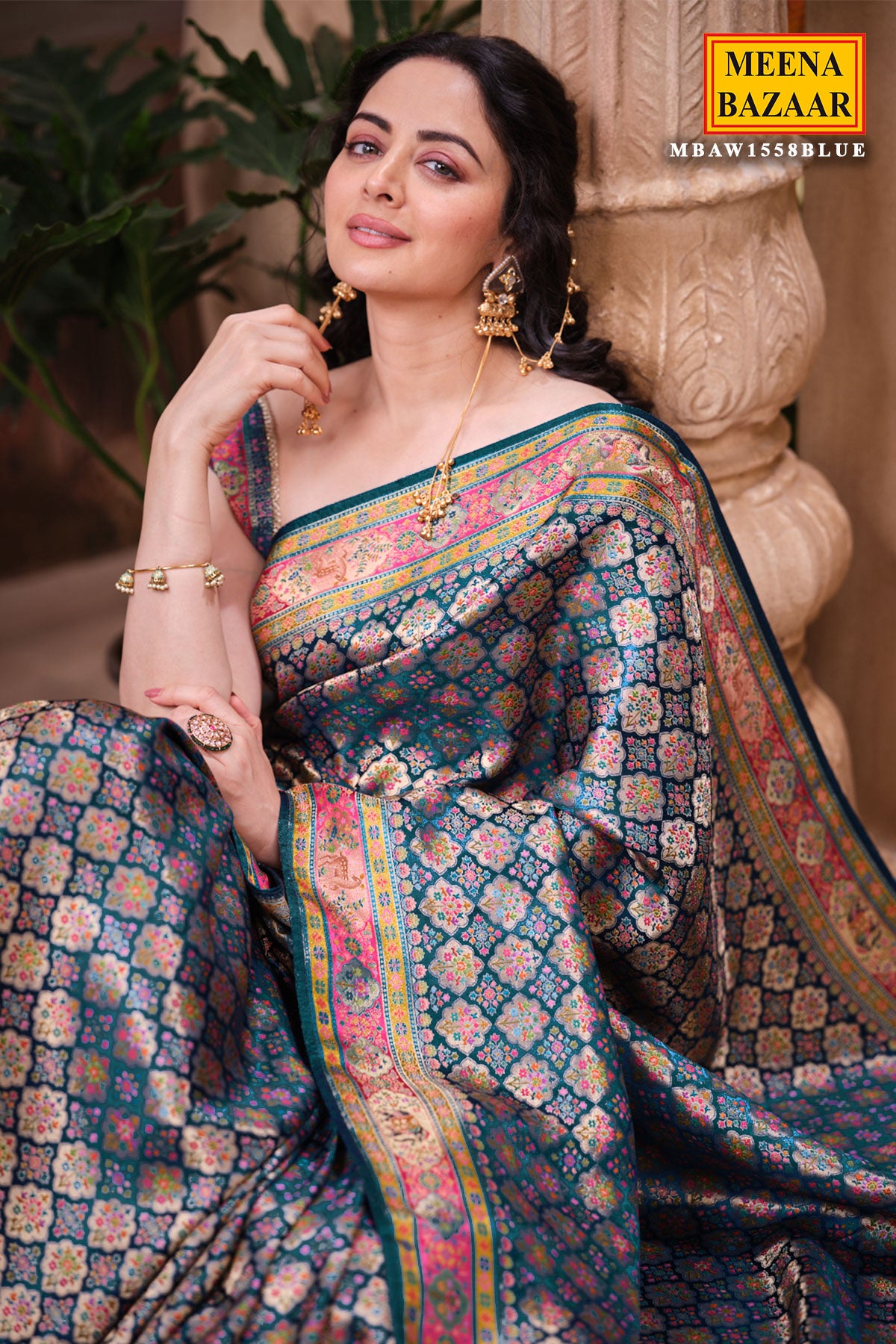 Dark Turquoise Blue Silk Weaving Saree Rich Traditional & Festive Wear