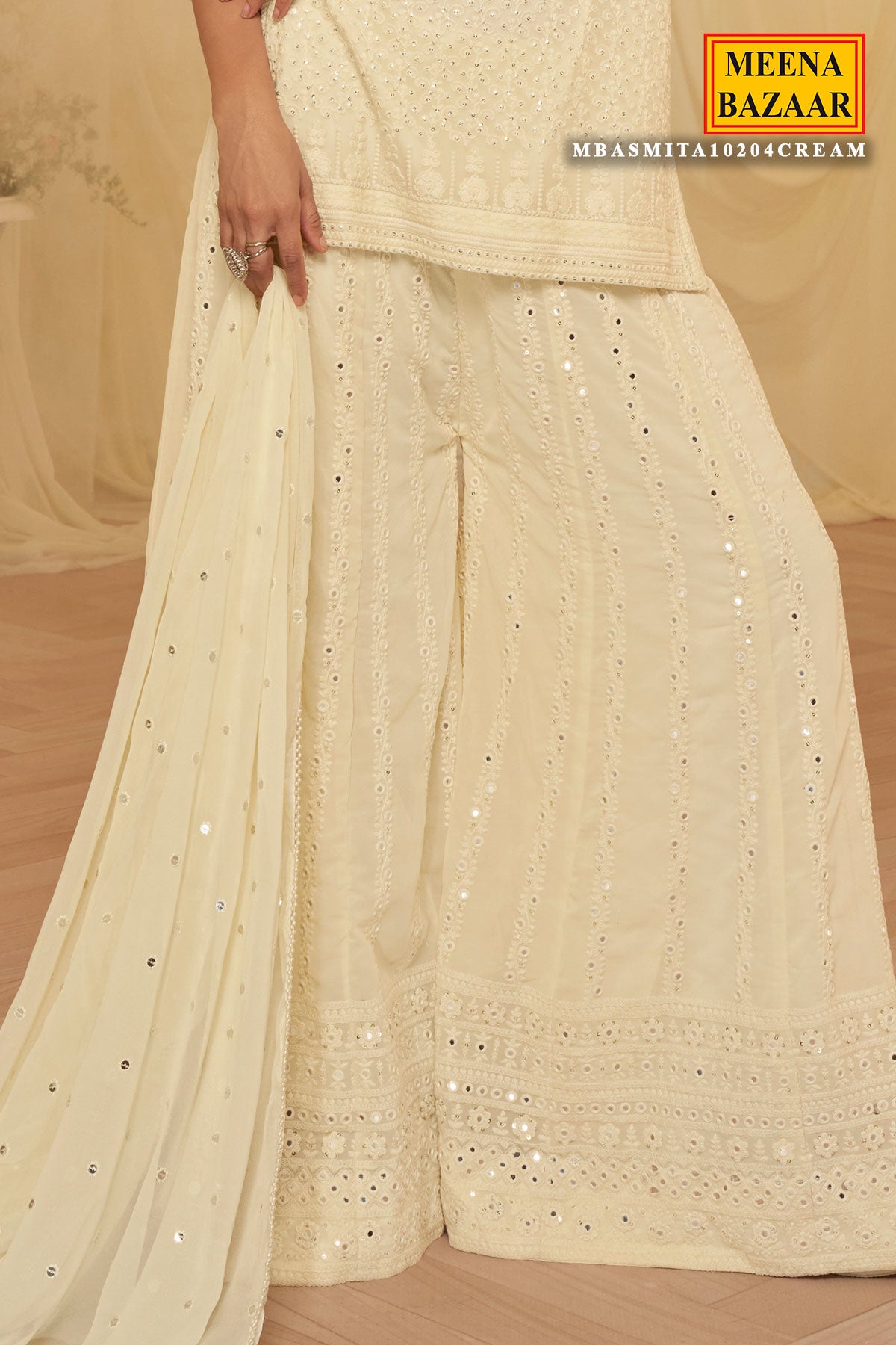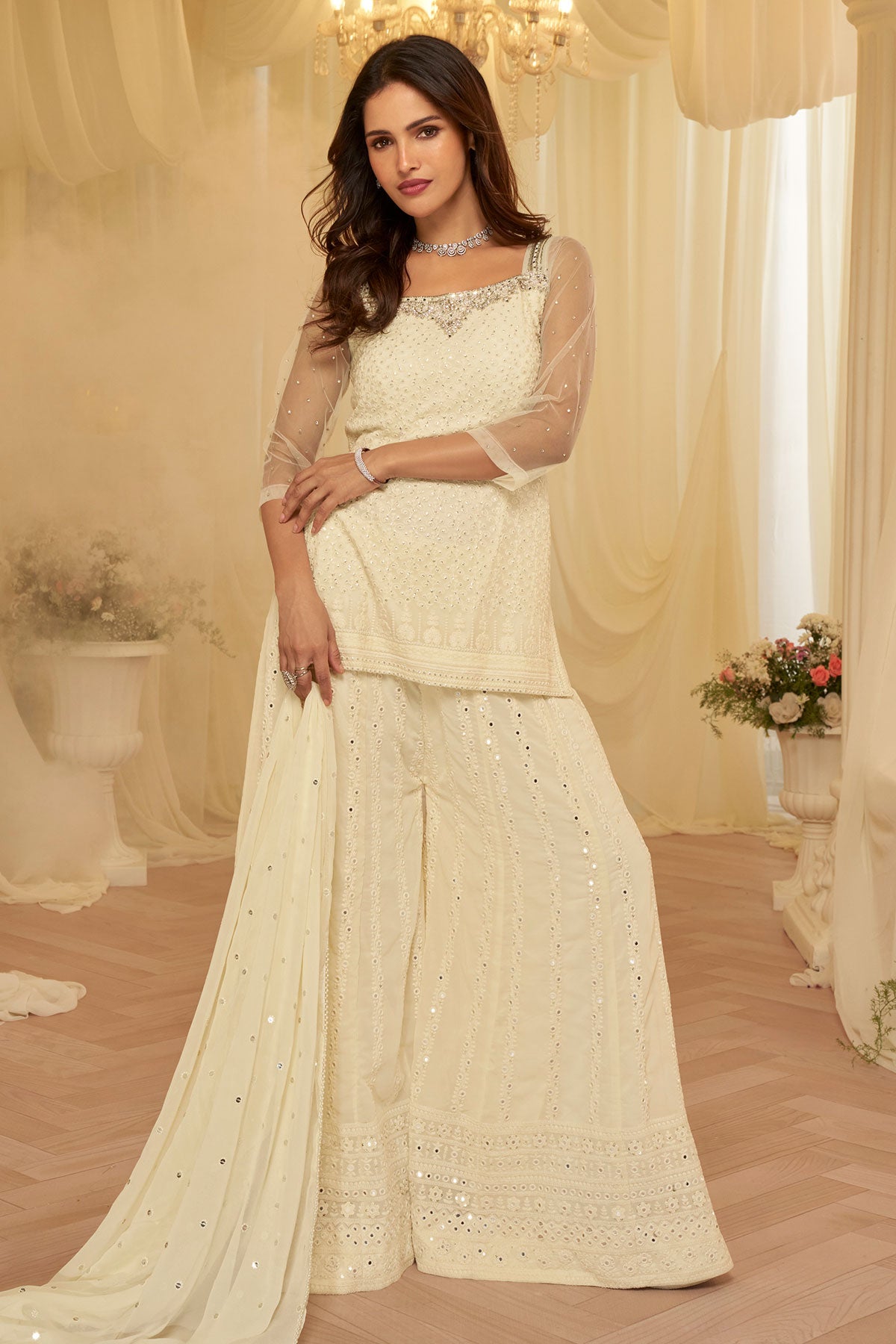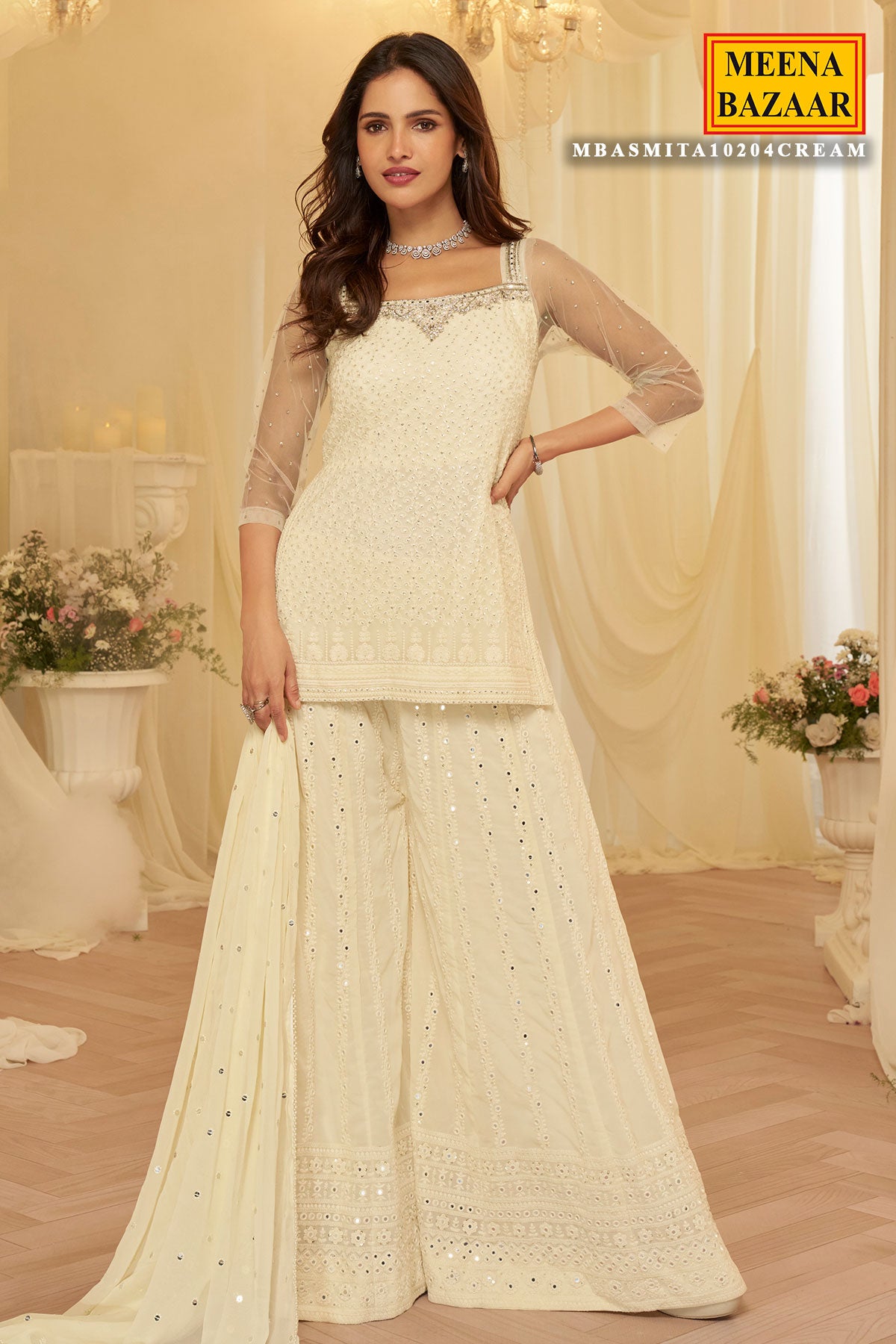 Designed to offer both comfort and style, the lightweight georgette fabric ensures ease of movement while maintaining a graceful drape. The soothing cream tone paired with elegant embroidery makes this outfit a versatile addition to your ethnic wardrobe.