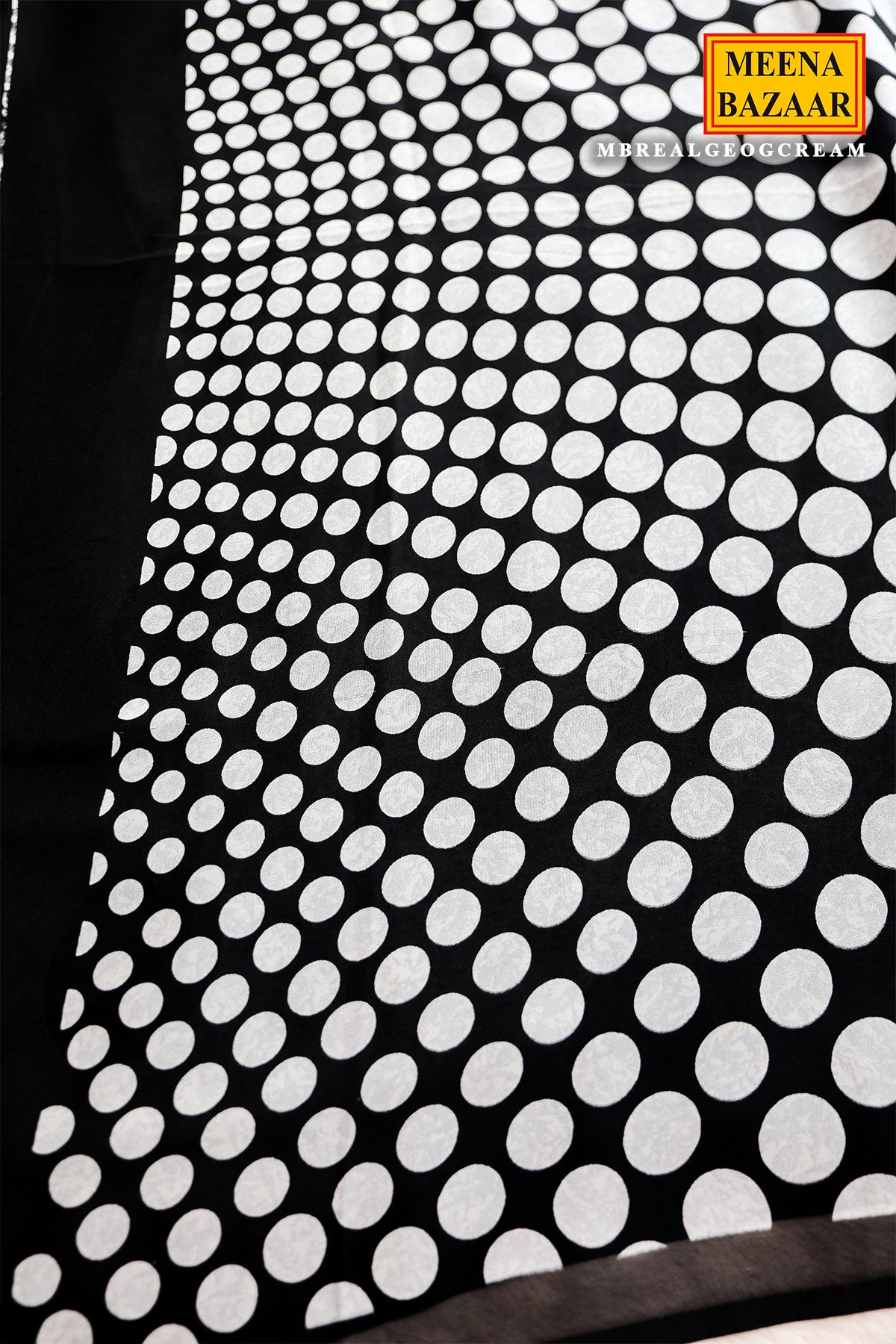Discover the allure of our Cream Georgette Polka Dot Printed Saree, a garment that weaves together the tranquility of nature with the elegance of fashion. The fabric, as light as a feather, is kissed with a print of delicate print, each one a celebration of life’s natural rhythms. As you drape it around you, let it be a reminder of the quiet strength and enduring beauty of nature’s creations. Note: Color may slightly be different from the actual item due to photographic lighting sources or the monitor's settings.