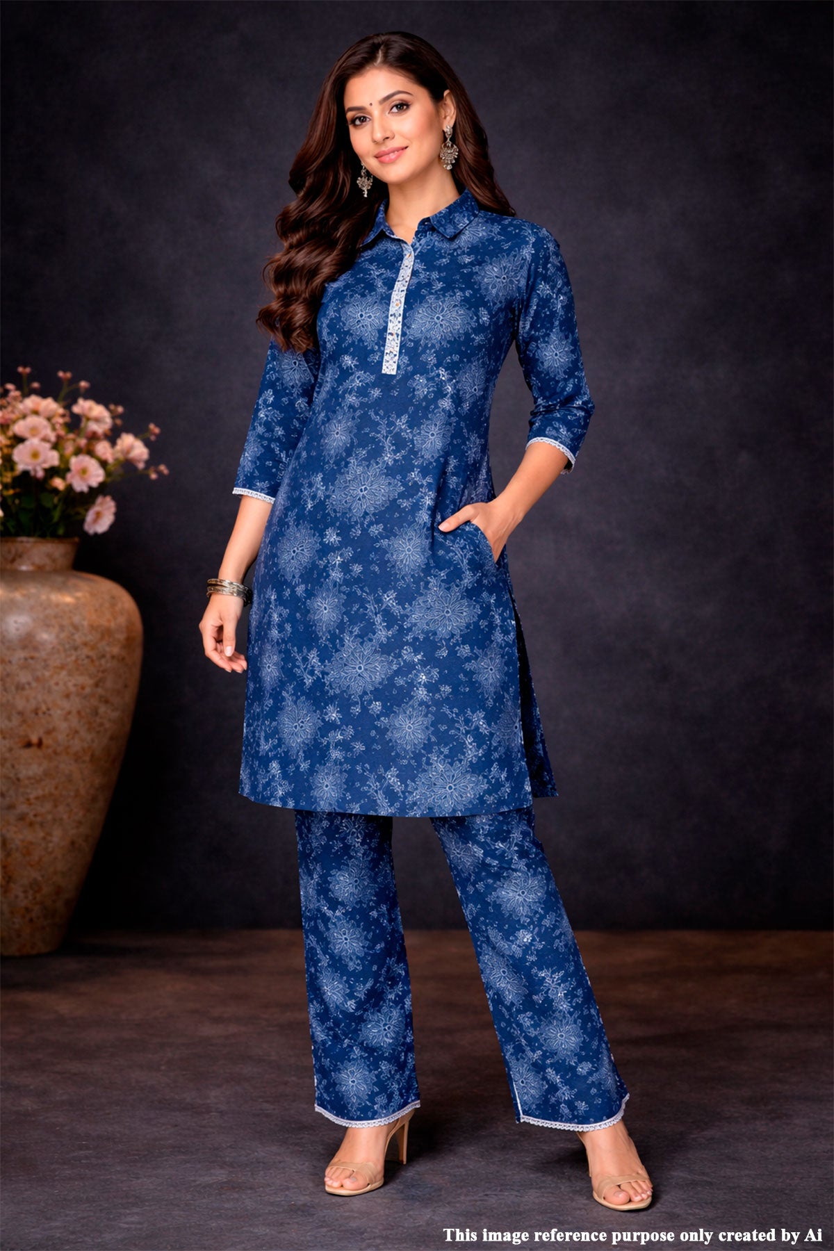 The soothing blue hue brings sophistication, while the lightweight texture allows easy movement and graceful wear. Pair it with straight pants, palazzos, or denims for a versatile and polished ensemble suitable for office wear, casual outings, or festive day gatherings.