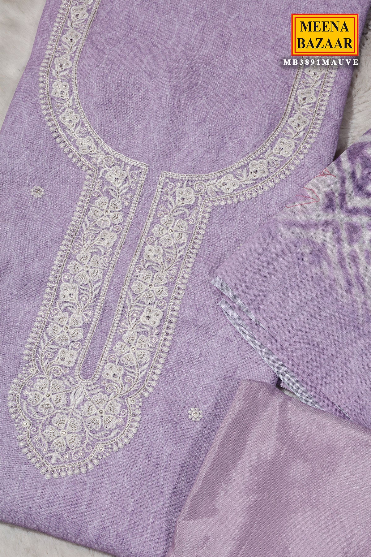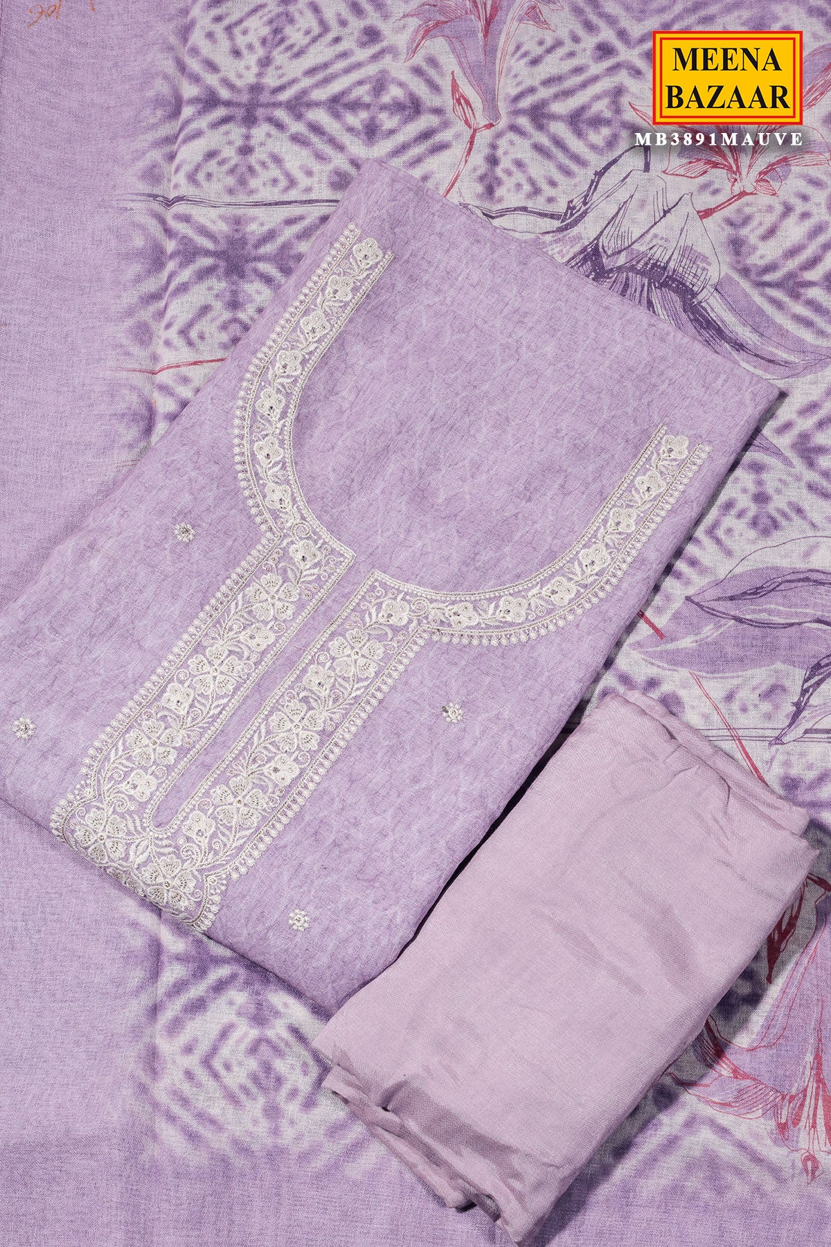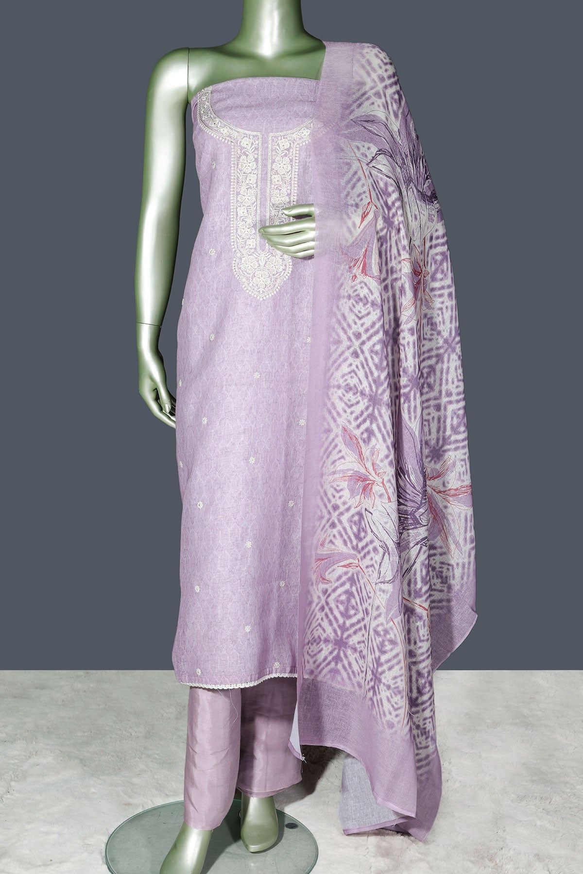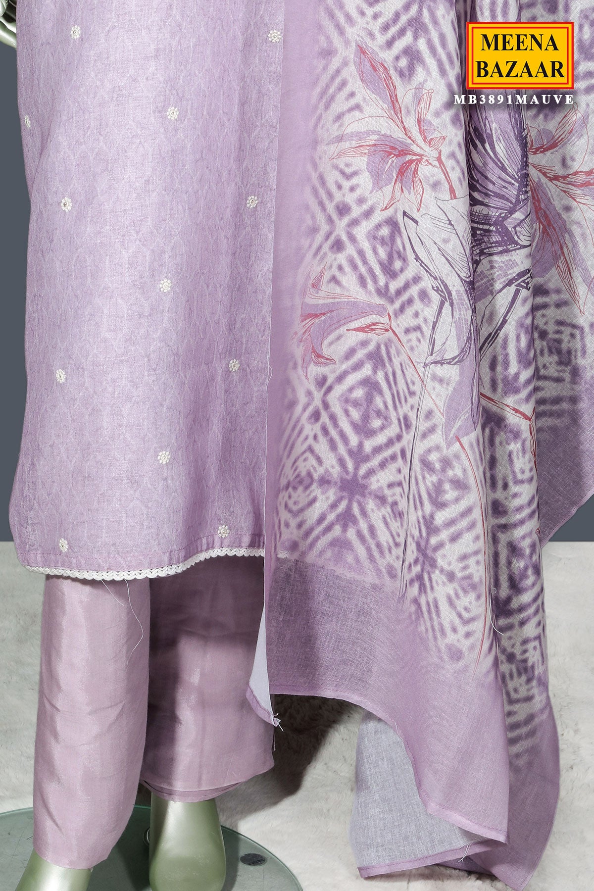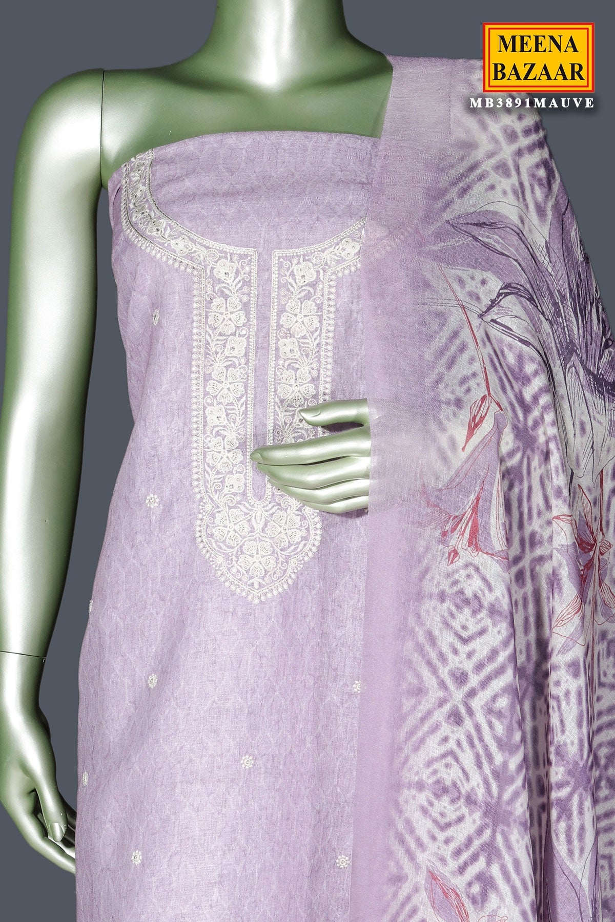 Elegant Mauve Linen Unstitched Suit with Embroidery Detail