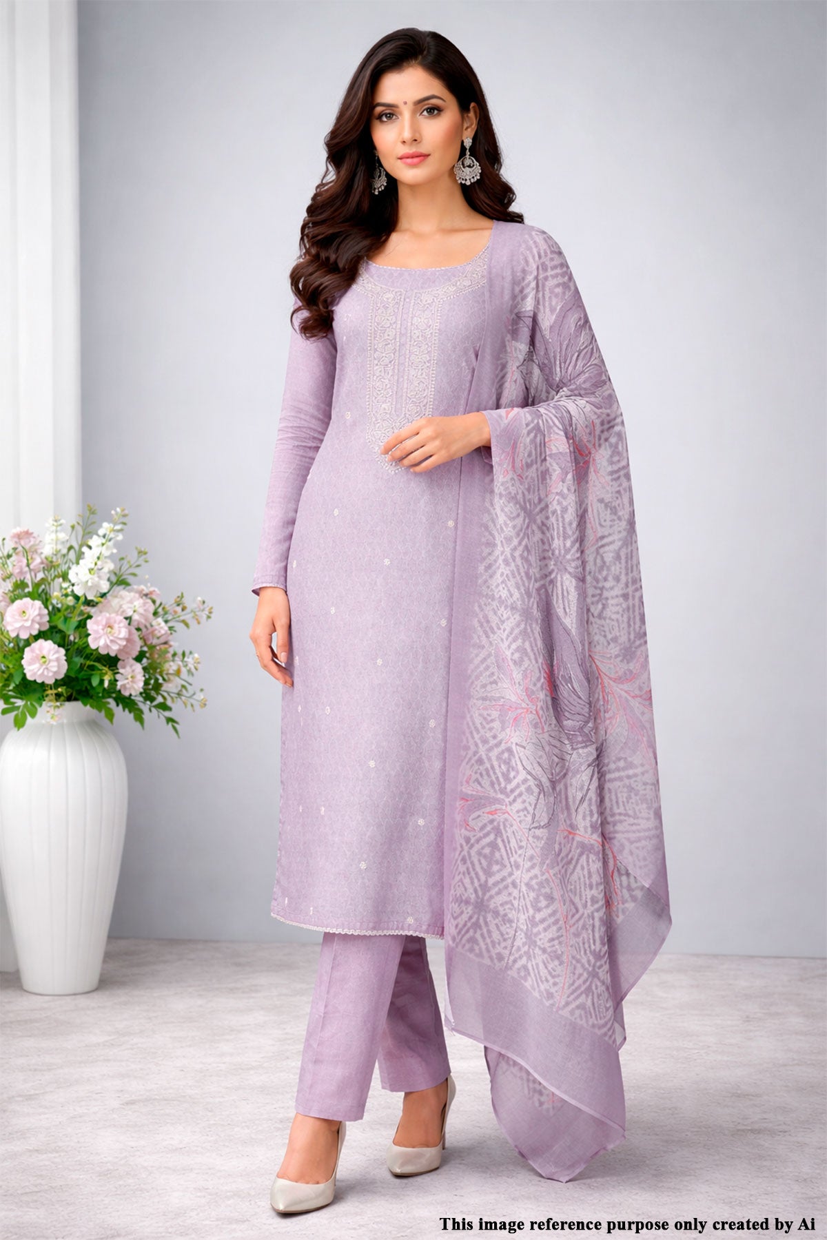 The soothing mauve tone brings a modern yet timeless charm, making it easy to style for various occasions. Designed as an unstitched set, it allows you to customize the fit and silhouette according to your preference. Pair it with subtle accessories for a polished ethnic look.