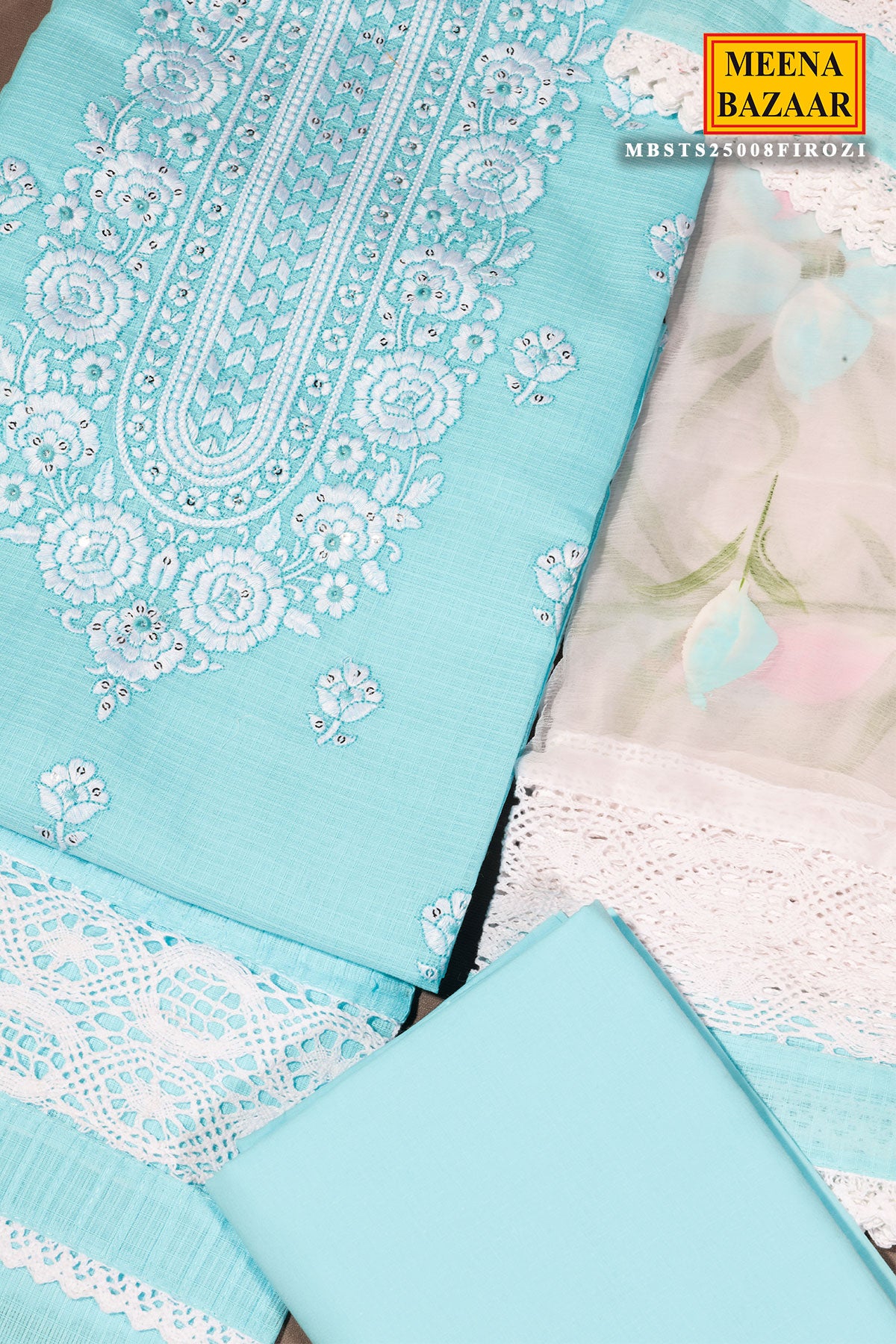 Firozi Kota Unstitched Suit with Elegant Embroidery