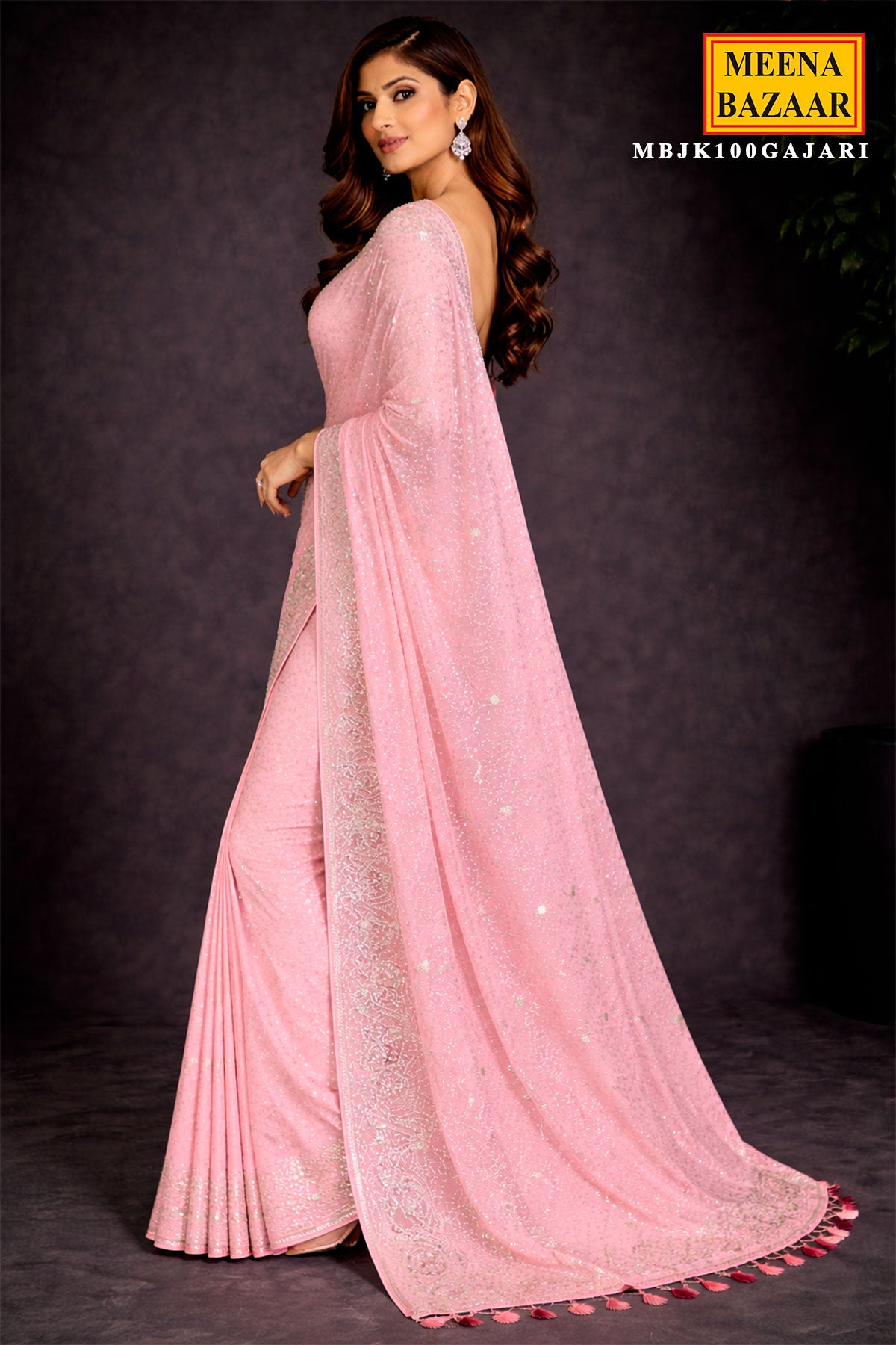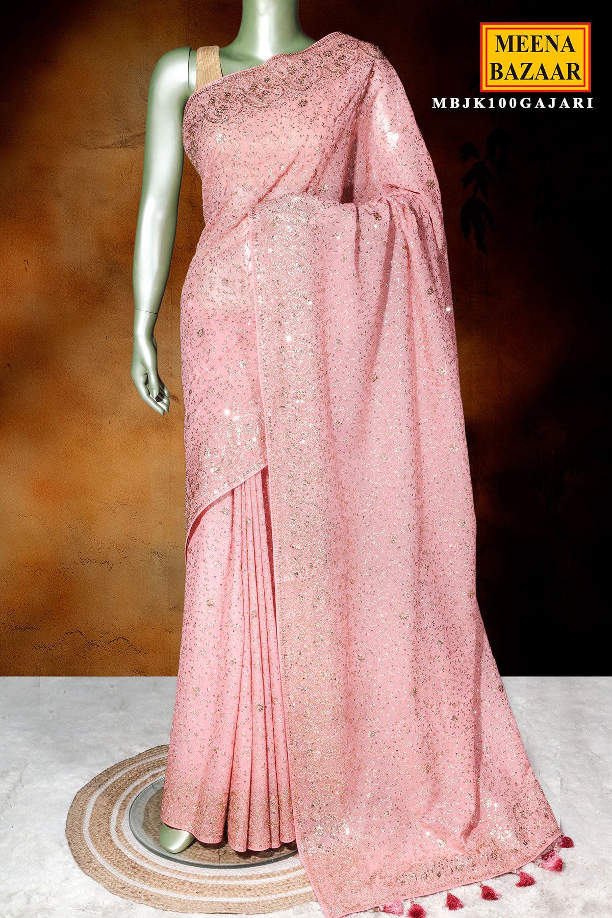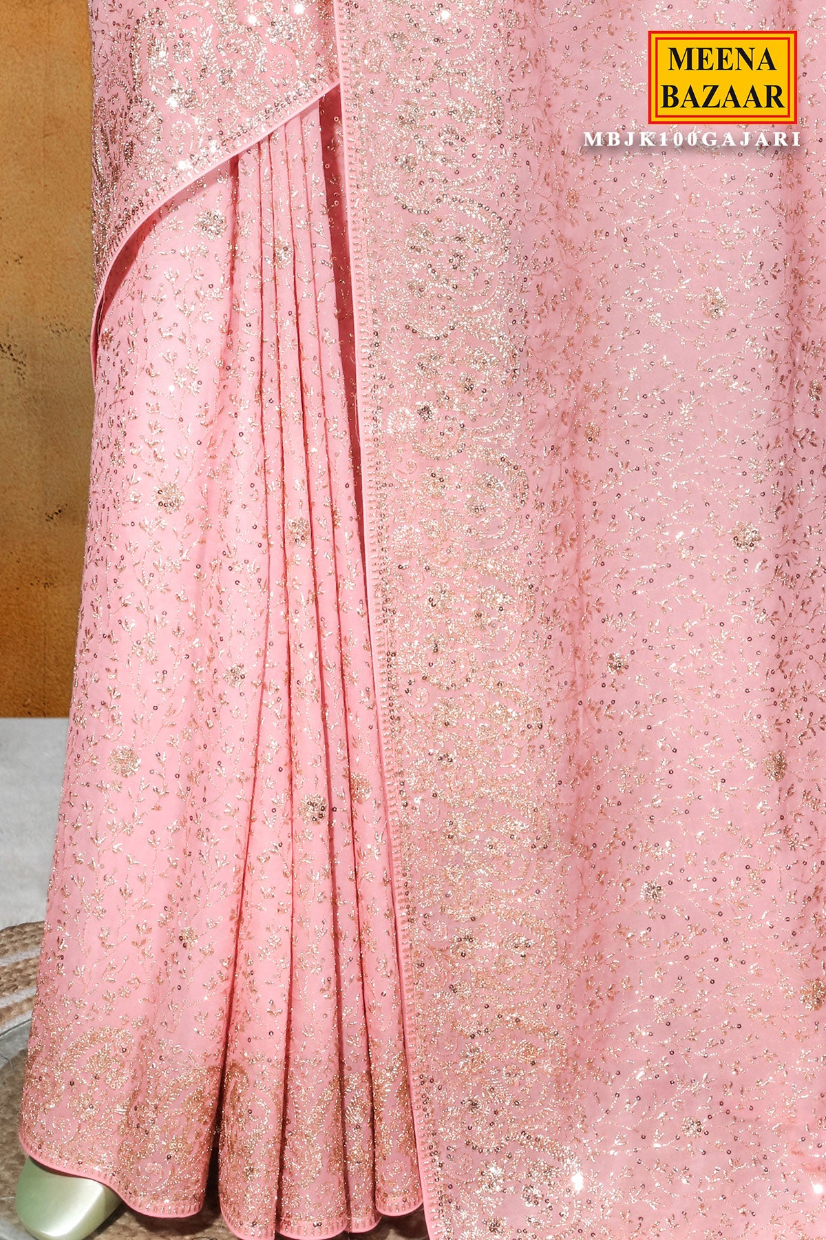 Step into timeless elegance with this luxurious Gajri Georgette Saree, exquisitely crafted to reflect grace and sophistication. Designed for the modern woman who appreciates tradition, this masterpiece showcases intricate zari and sequin work that adds a radiant shimmer to every drape.