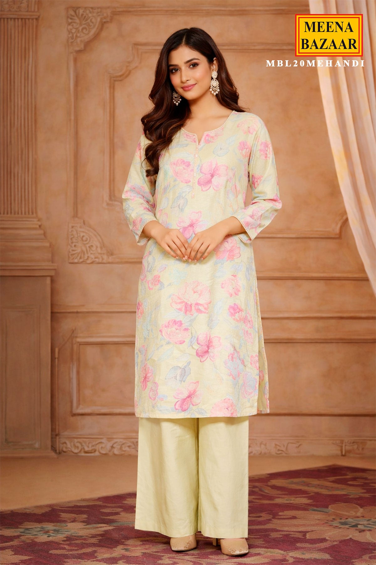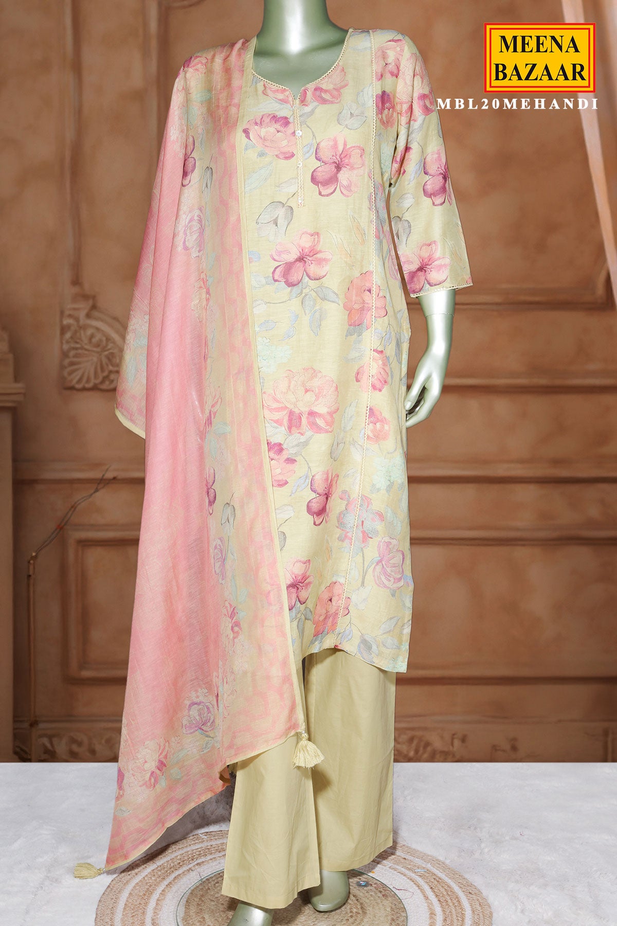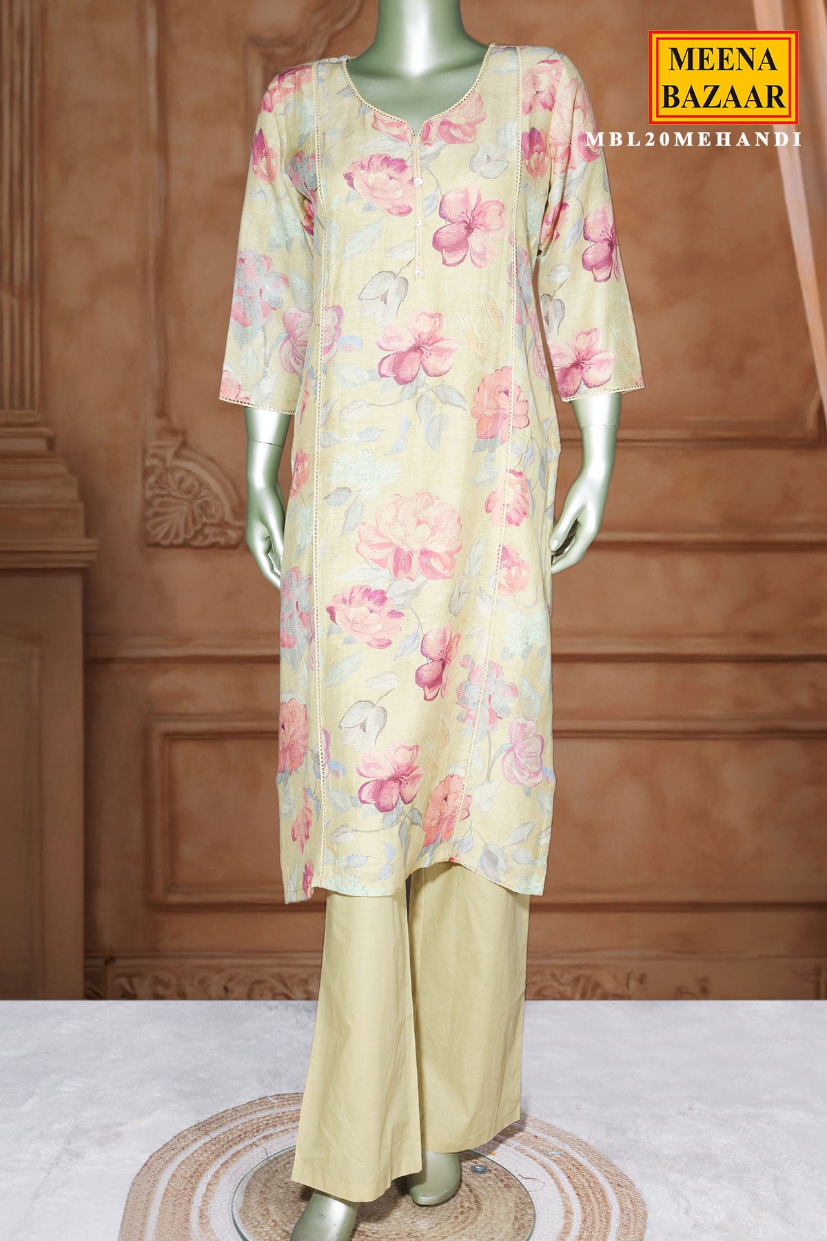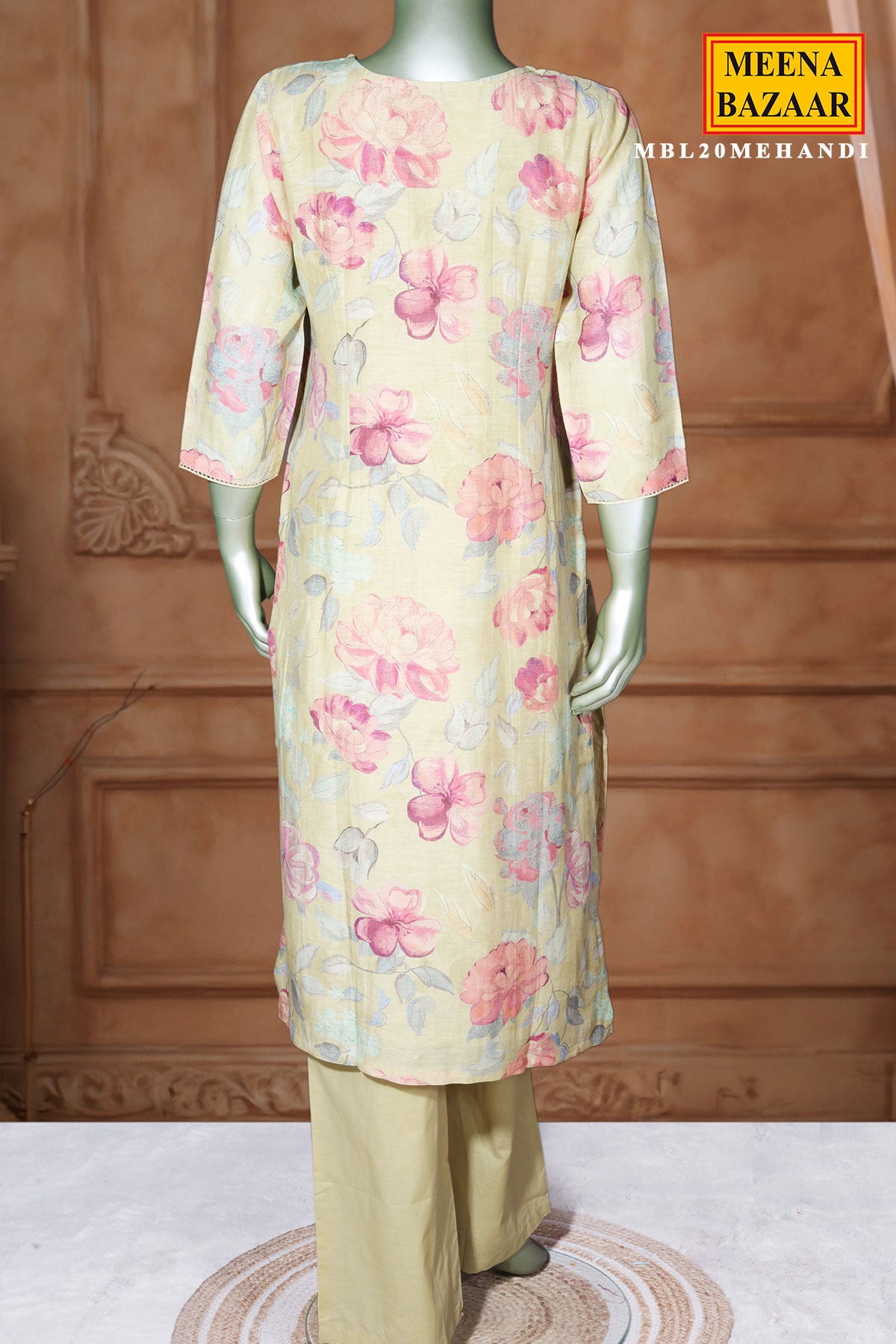 Upgrade your everyday ethnic style with this elegant mehendi cotton printed readymade suit from Meena Bazaar, designed for comfort, convenience, and effortless styling. Crafted from premium cotton fabric, this suit is soft, breathable, and lightweight, making it perfect for all-day wear. The subtle printed design enhances its traditional appeal while keeping the look minimal and versatile for modern lifestyles. Designed as a readymade suit, it offers a ready-to-wear fit, eliminating the need for stitching and making it ideal for quick and hassle-free dressing. The earthy mehendi color tone adds a natural and graceful charm, making it perfect for daily wear, office wear, and casual outings.