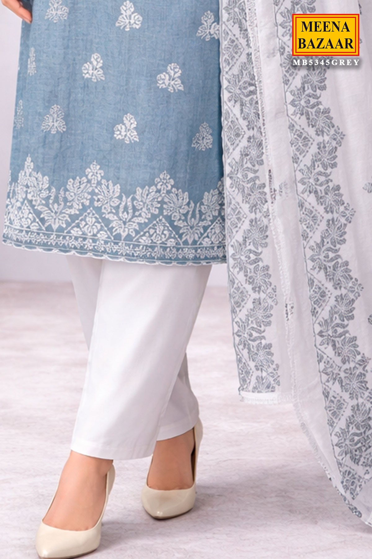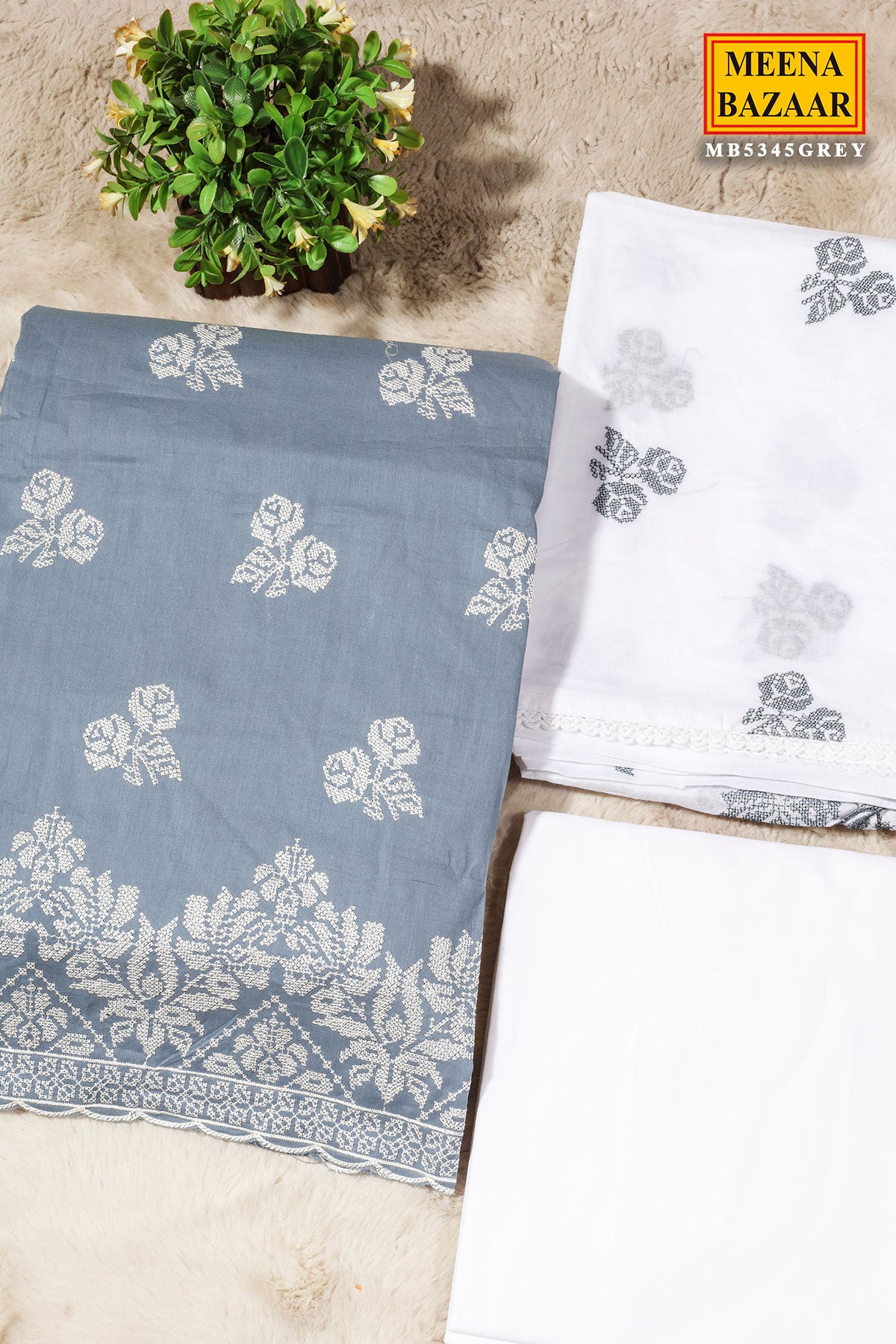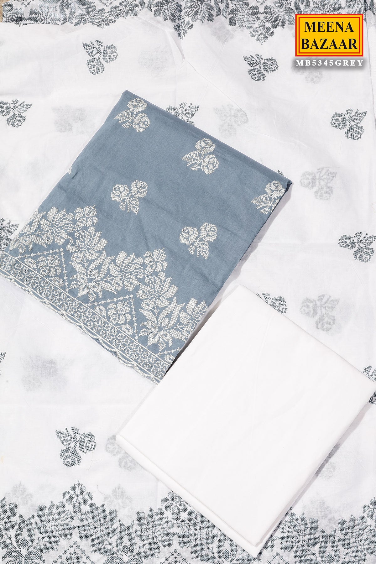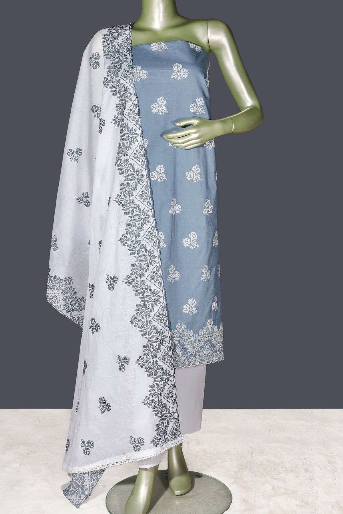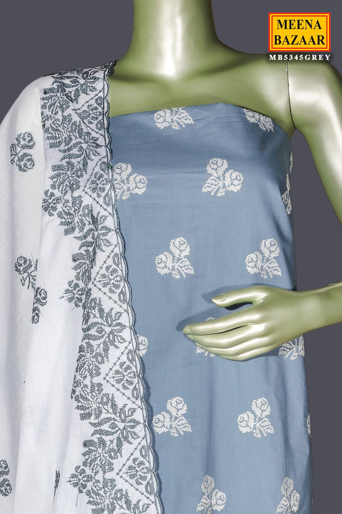 Refined and effortlessly graceful, this Grey Cotton Unstitched Suit is designed for timeless elegance and everyday sophistication. Crafted from breathable cotton fabric, it ensures all-day comfort while maintaining a polished look. The delicate embroidery work enhances the subtle grey tone, adding a touch of luxury and artisanal charm.