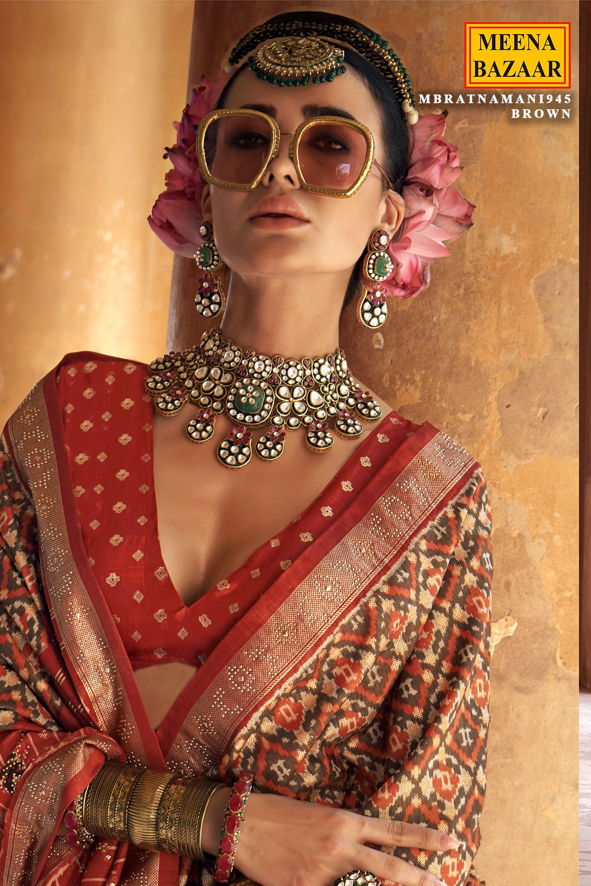 Luxury Brown Silk Saree with Siroski Work – Elegant Ratnamani Design