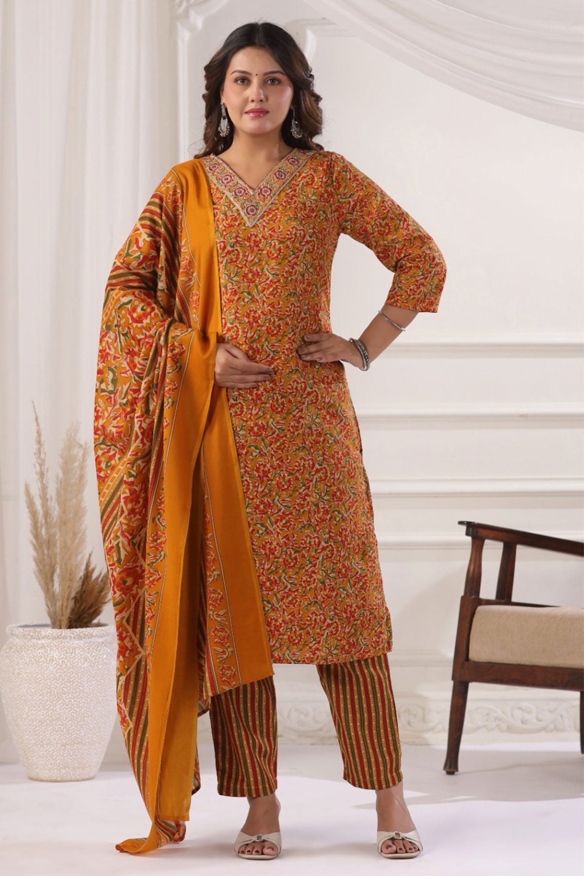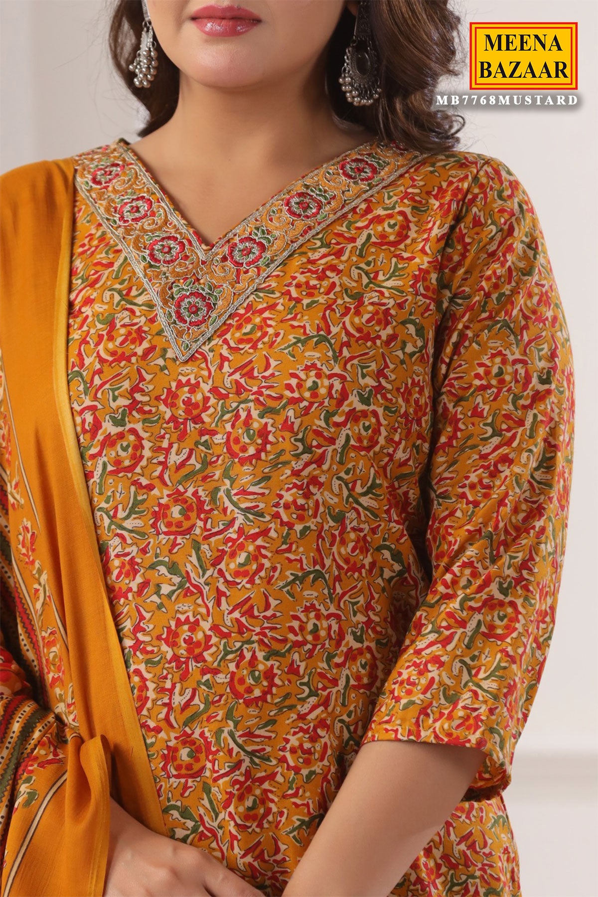 Elevate your everyday ethnic wardrobe with this graceful Mustard Cotton Ready-Made Suit, designed for effortless elegance and comfort. Crafted from breathable cotton fabric, this suit offers a soft feel and lightweight wear, making it perfect for long hours and warm days.