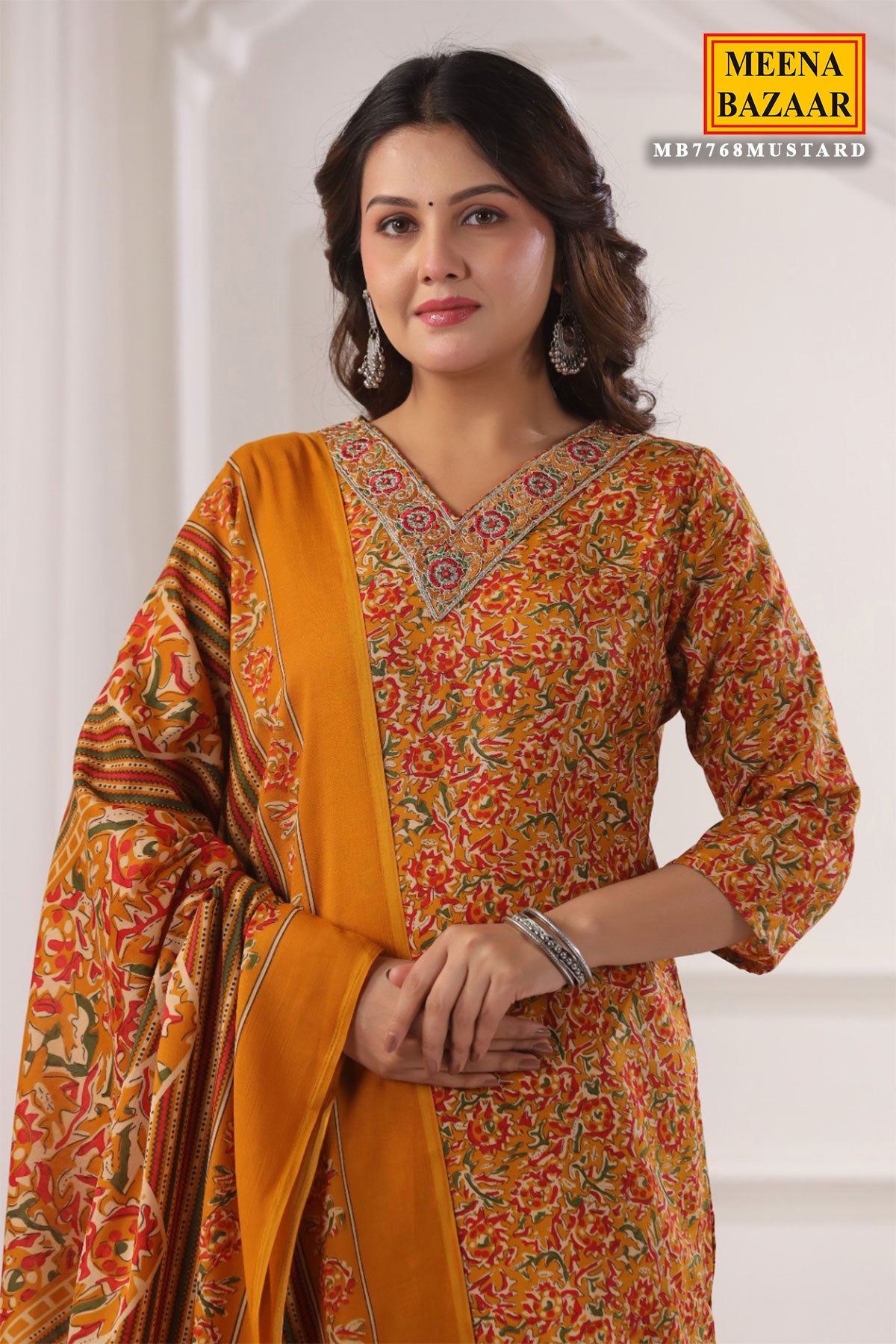 Mustard Cotton Ready-Made Suit with Elegant Neck Detailing