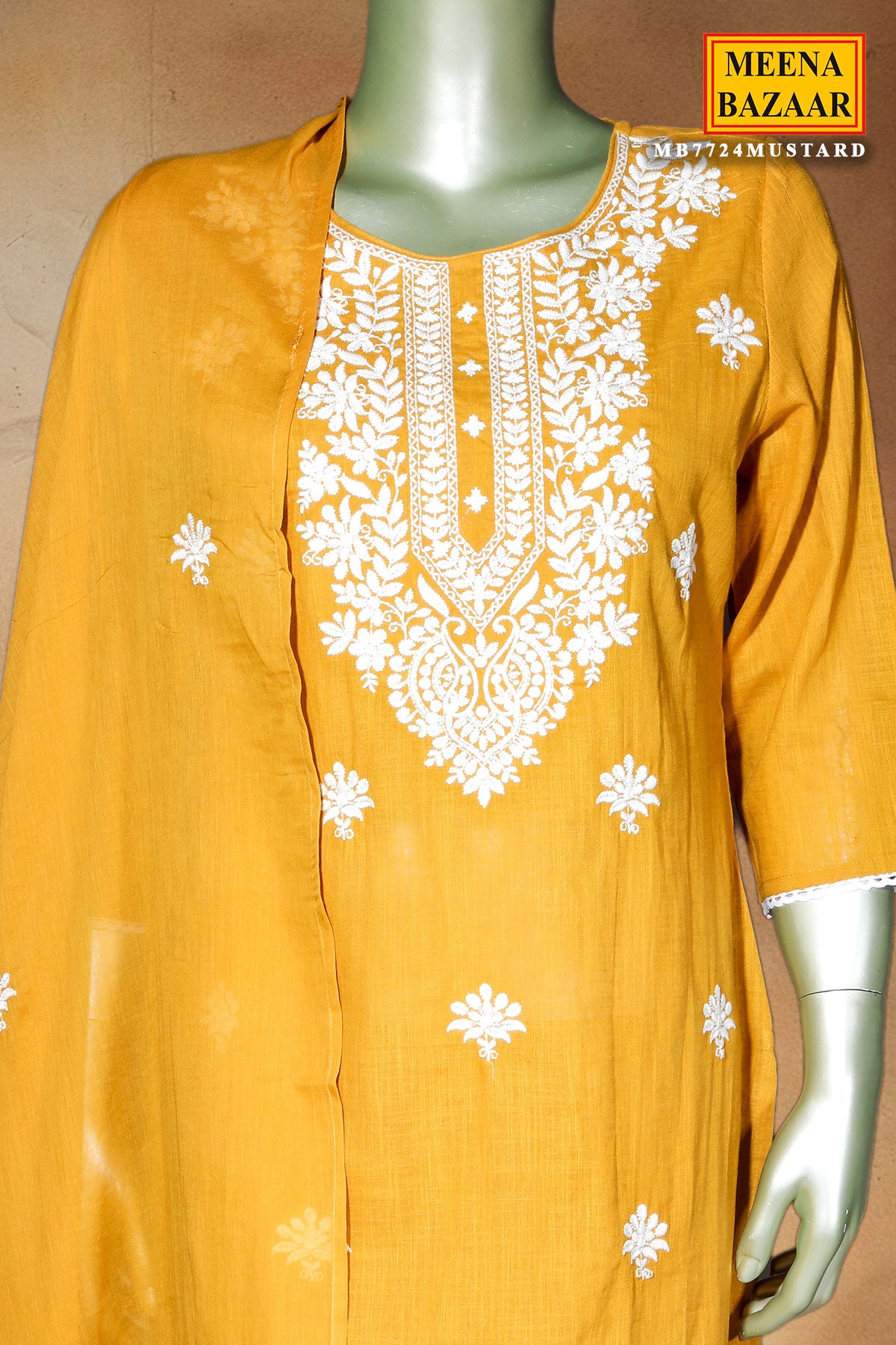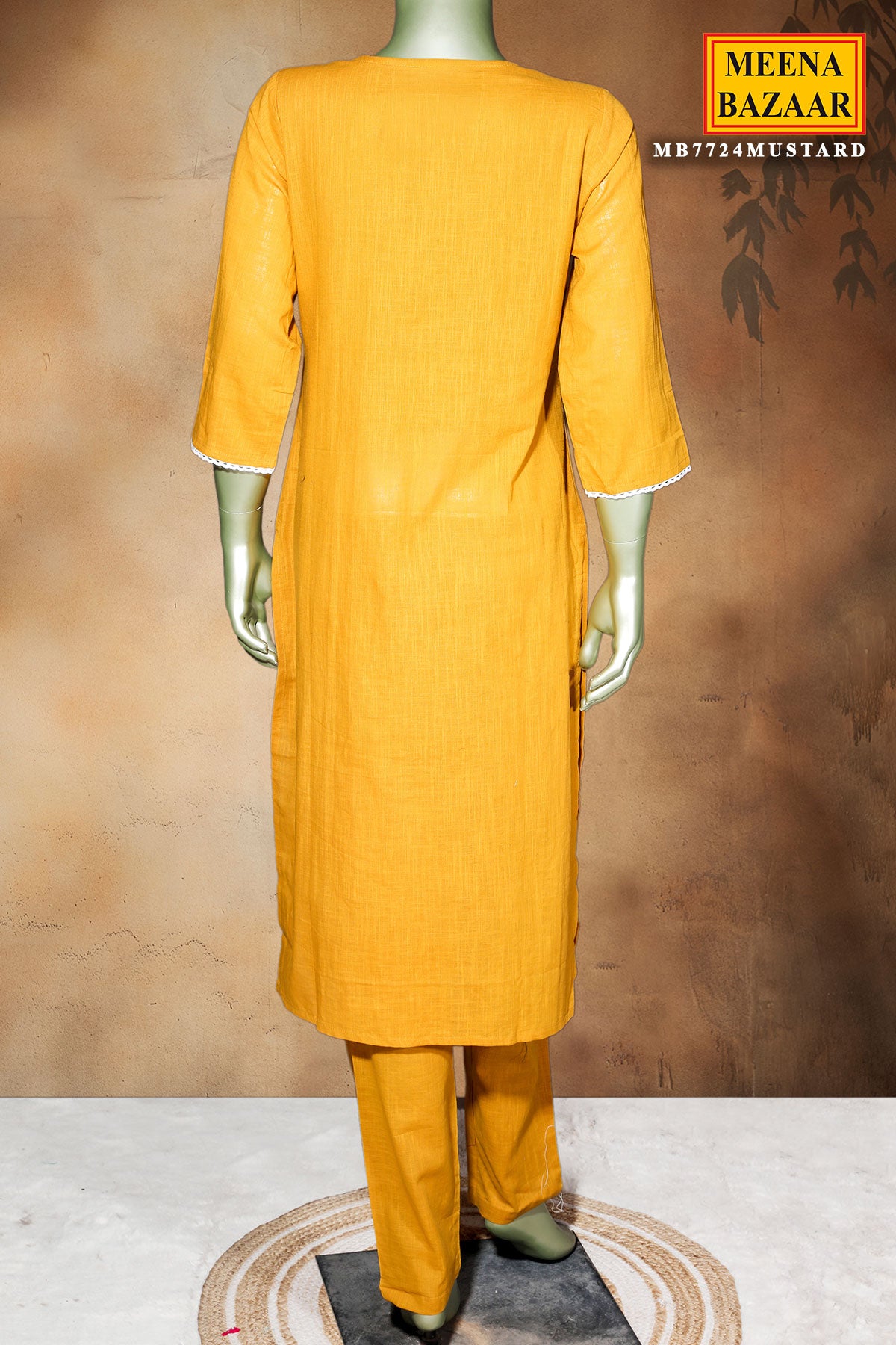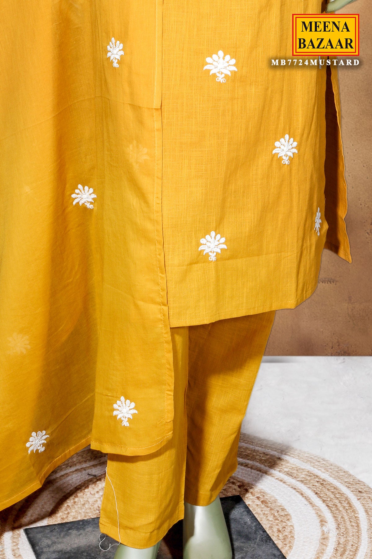 Step into effortless elegance with this Mustard Ready-Made Cotton Suit, designed to blend comfort with timeless ethnic charm. Crafted from breathable cotton fabric, this outfit ensures all-day ease while the delicate neck embroidery adds a touch of sophistication. Perfect for office wear, casual gatherings, and festive daytime occasions, this suit enhances your look with subtle grace.