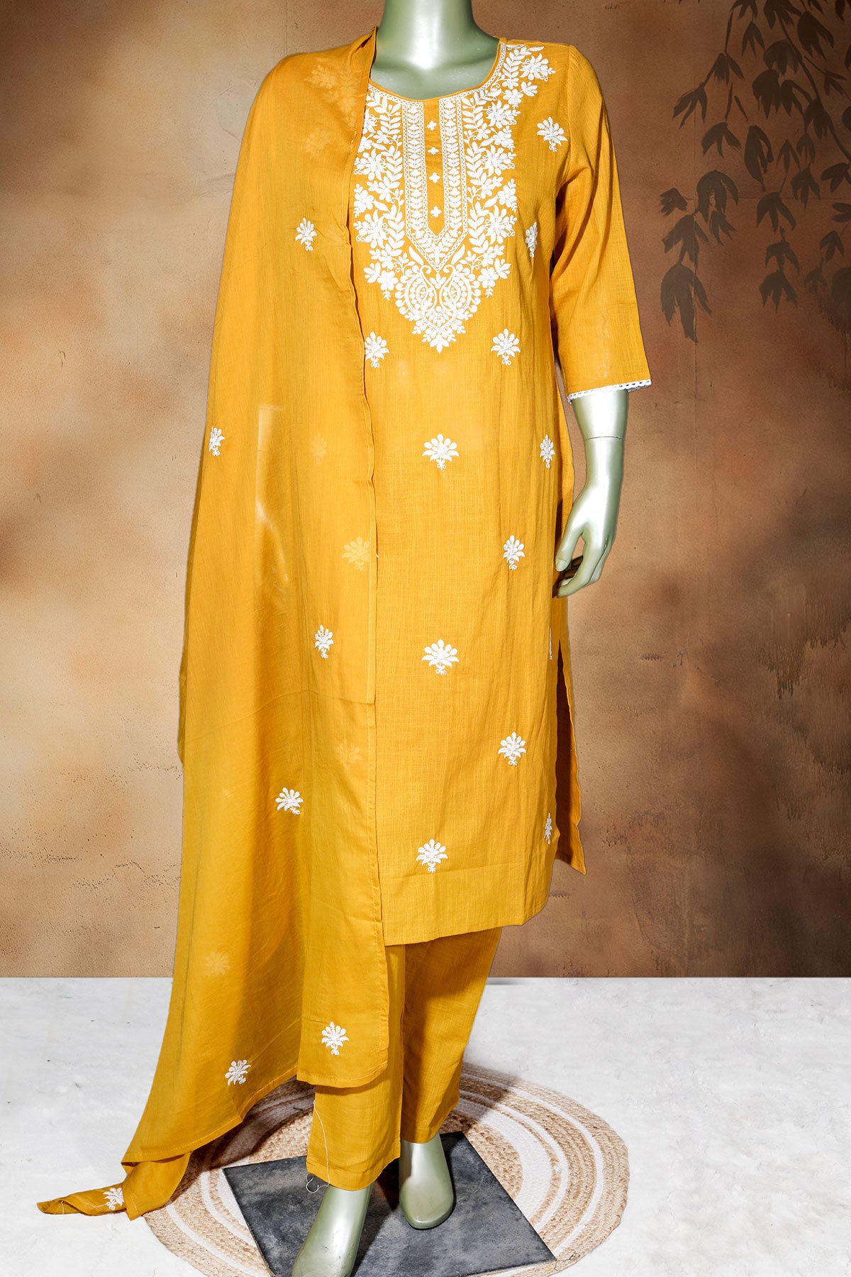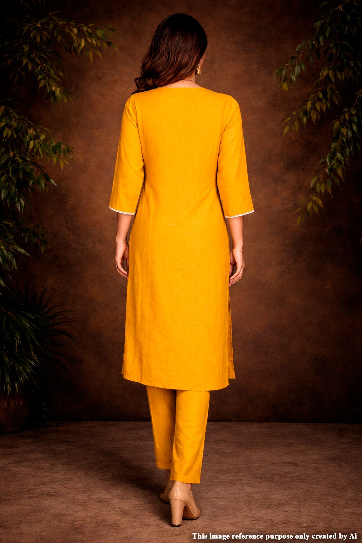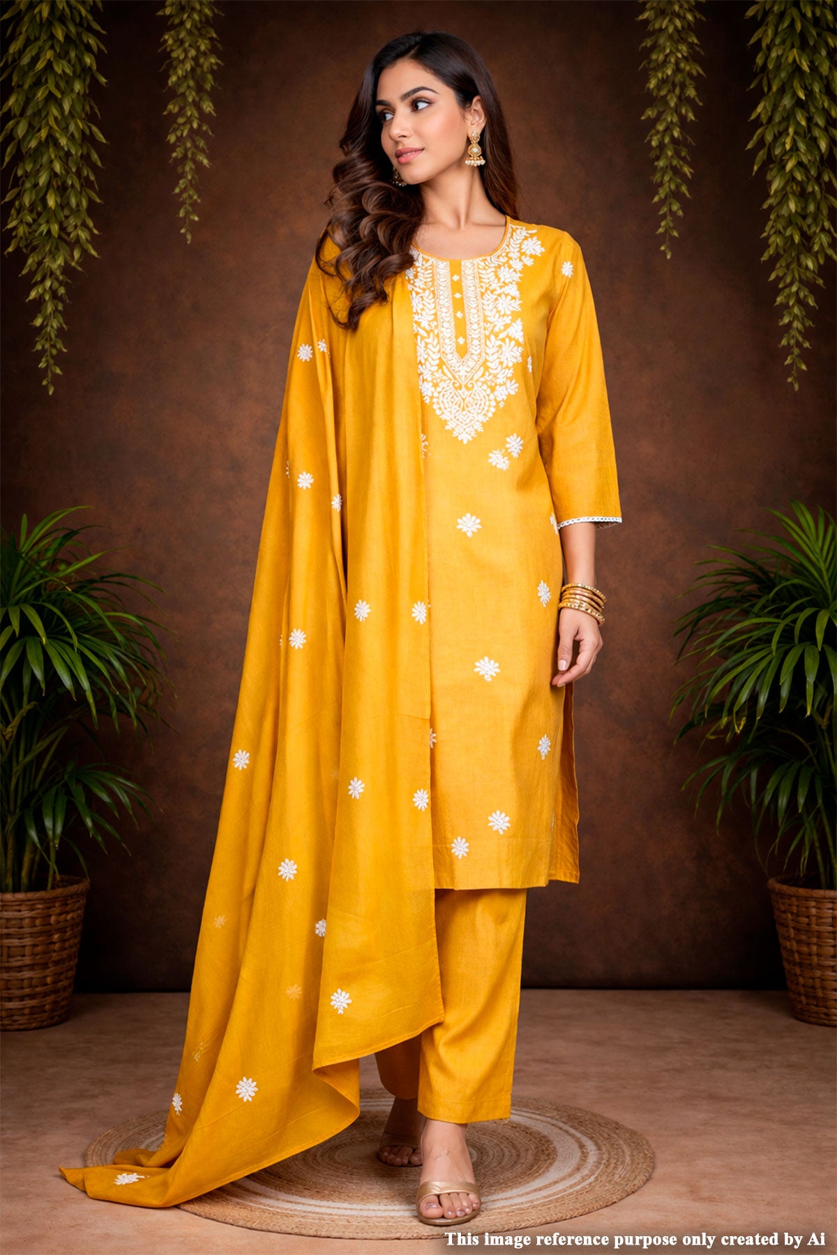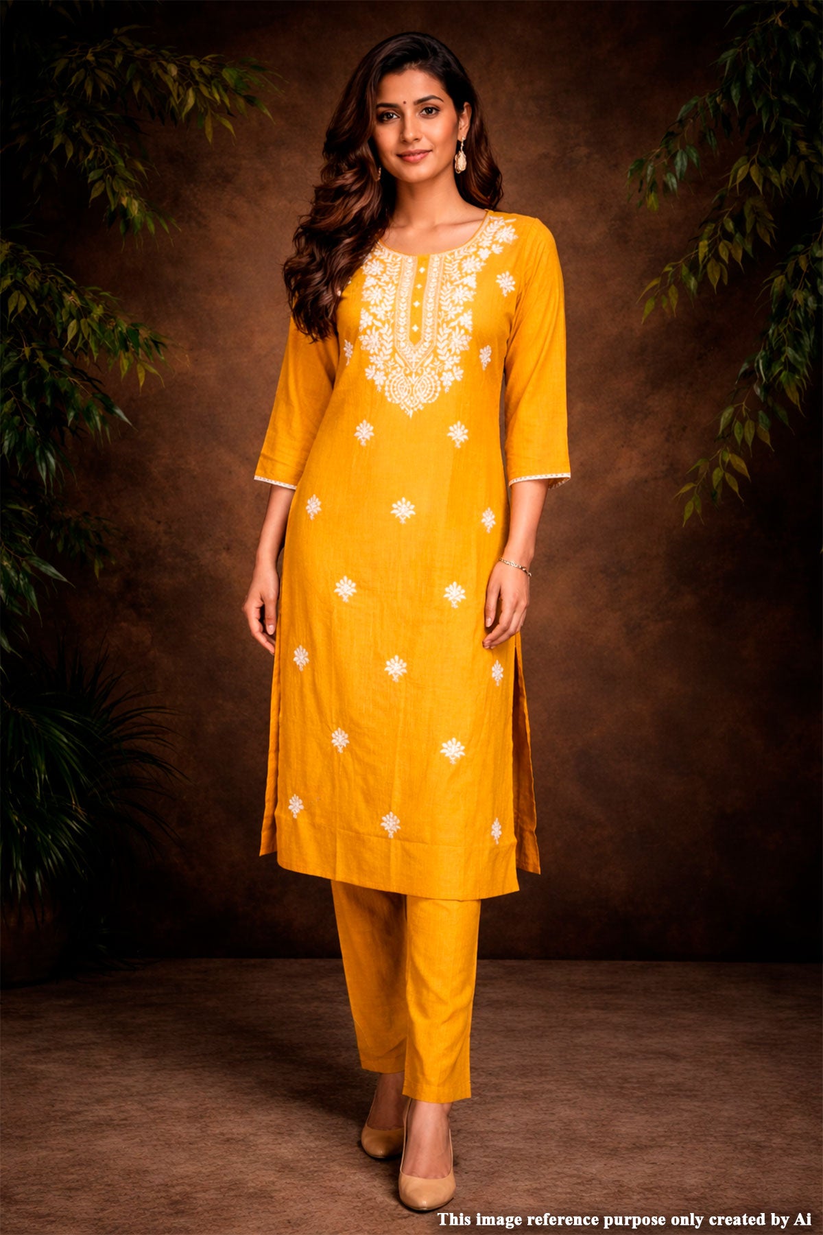 Step into effortless elegance with this Mustard Ready-Made Cotton Suit, designed to blend comfort with timeless ethnic charm. Crafted from breathable cotton fabric, this outfit ensures all-day ease while the delicate neck embroidery adds a touch of sophistication. Perfect for office wear, casual gatherings, and festive daytime occasions, this suit enhances your look with subtle grace.
