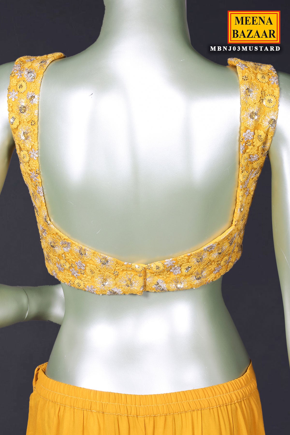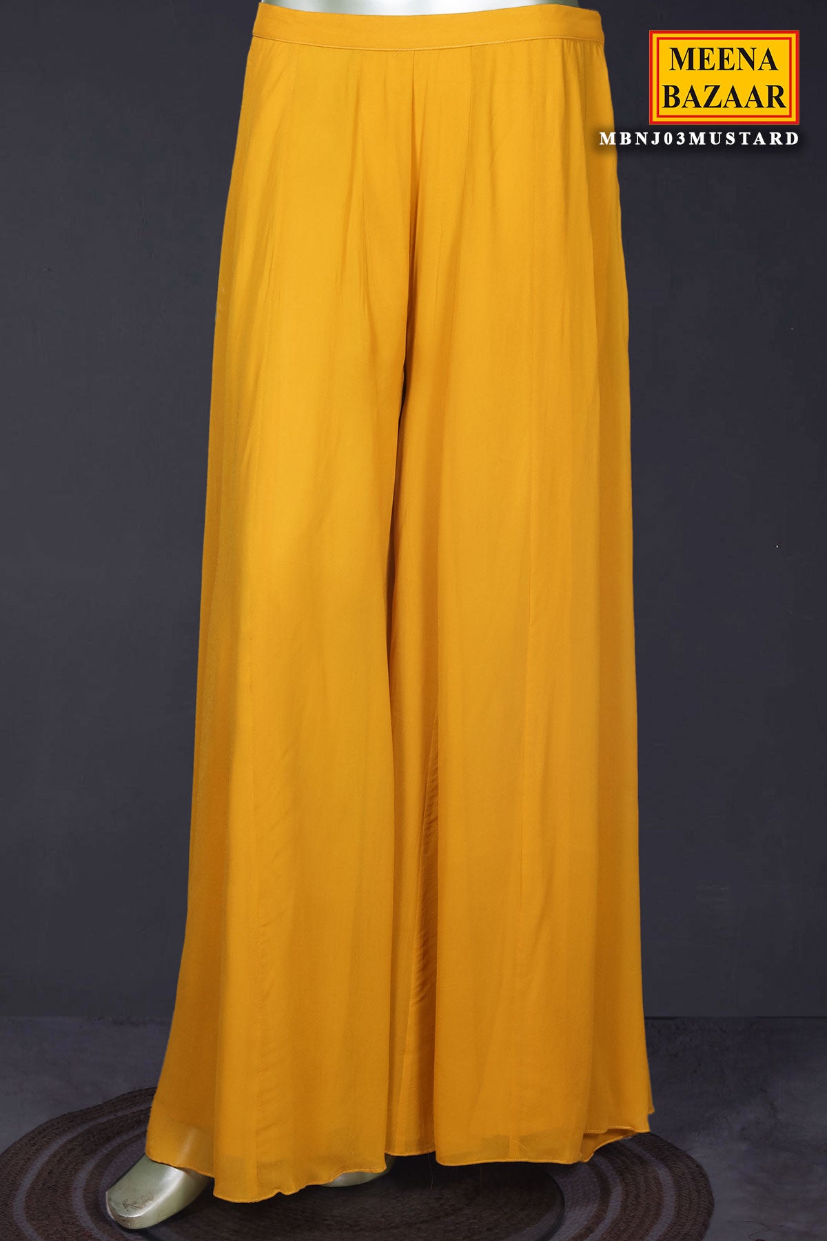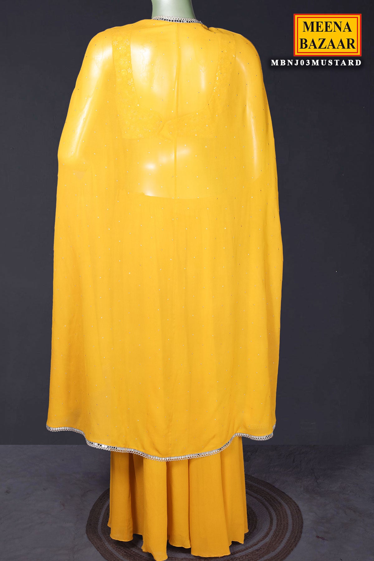 Make a fashion statement with our dynamic Mustard Georgette Embroidered Bustier-Skirt with Cape 3-Piece Co-ord Set perfect for those who love to stand out in a crowd. The gorgeous printed co-ord is a perfect blend of style and tradition and is sure to make a lasting impression. The bustier of this 3-piece co-ord features beautiful sequins & resham thread embroidery to ace up the appeal. It is complete with a mirror embellished cape and matching bottoms. Style Tip: Pair this ensemble with contrasting accessories, block heels, and other fashion accessories, to complete your look. Note: Color may slightly be different from the actual item due to photographic lighting sources or the monitor's settings.