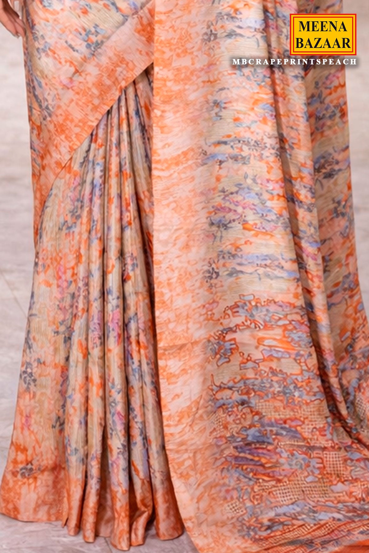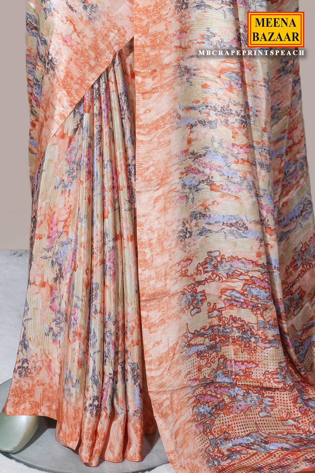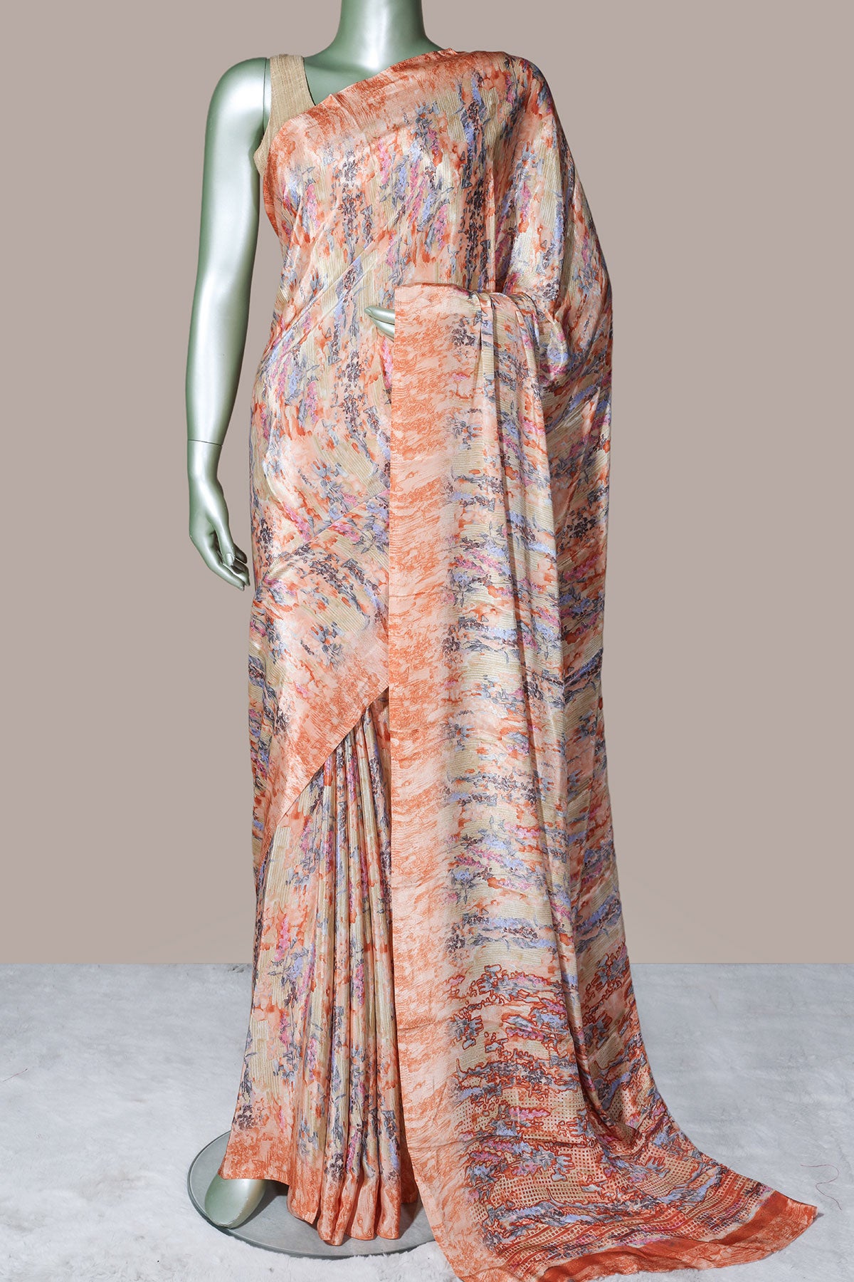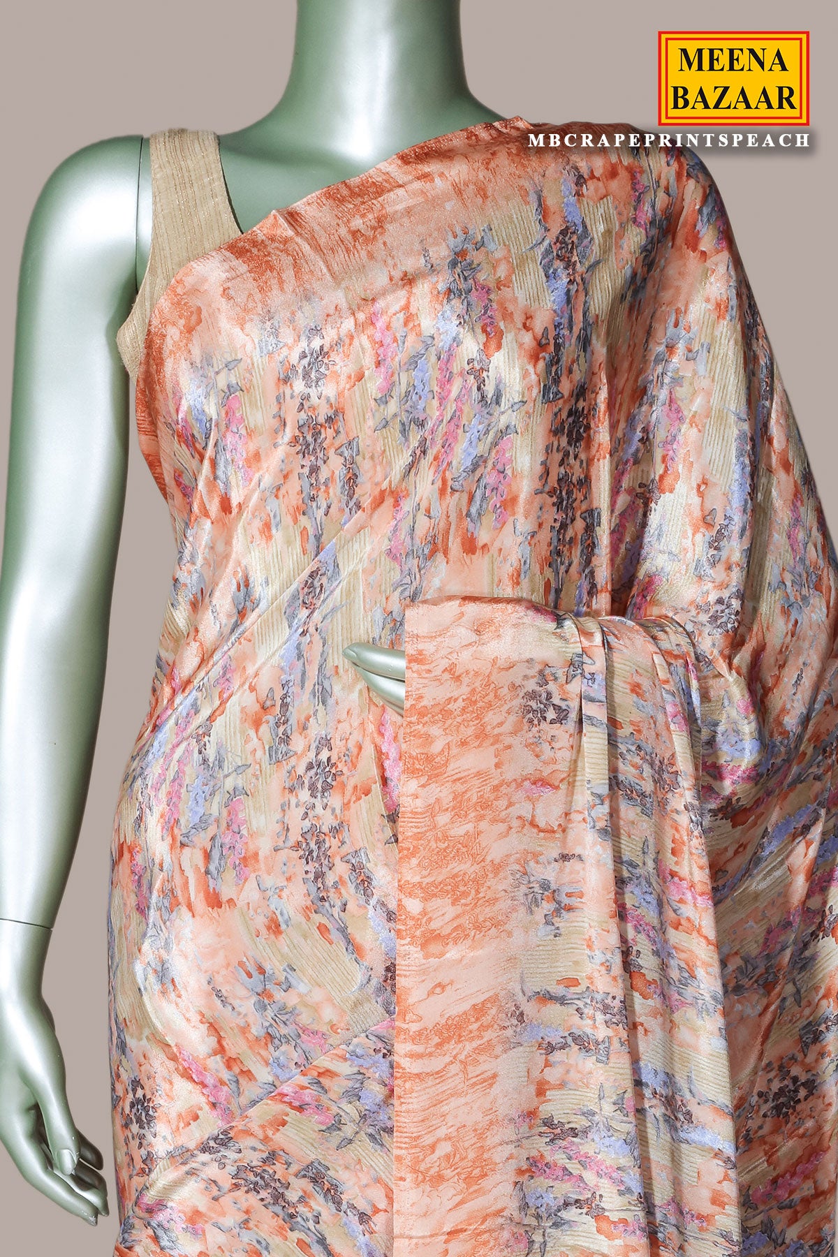 Peach Crepe Print Saree – Elegant Printed Drape