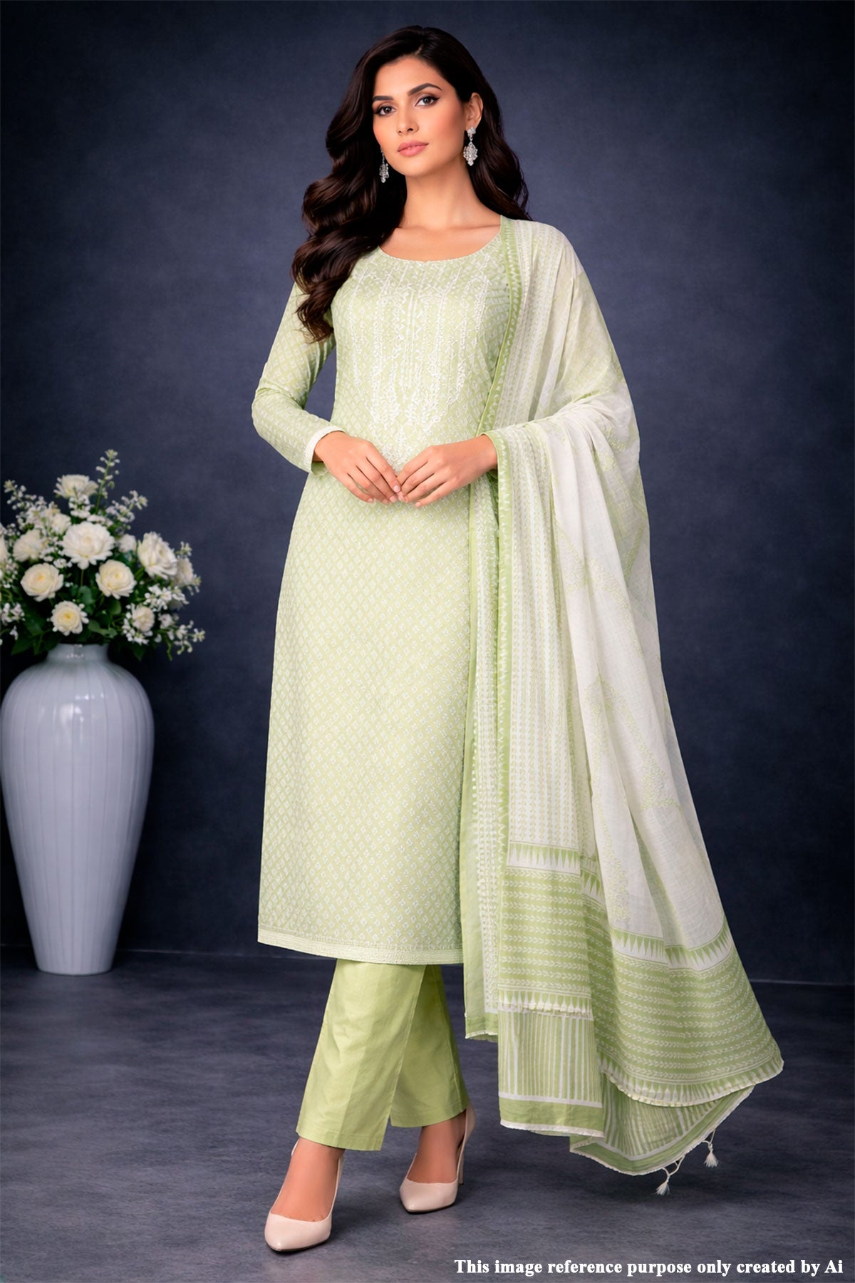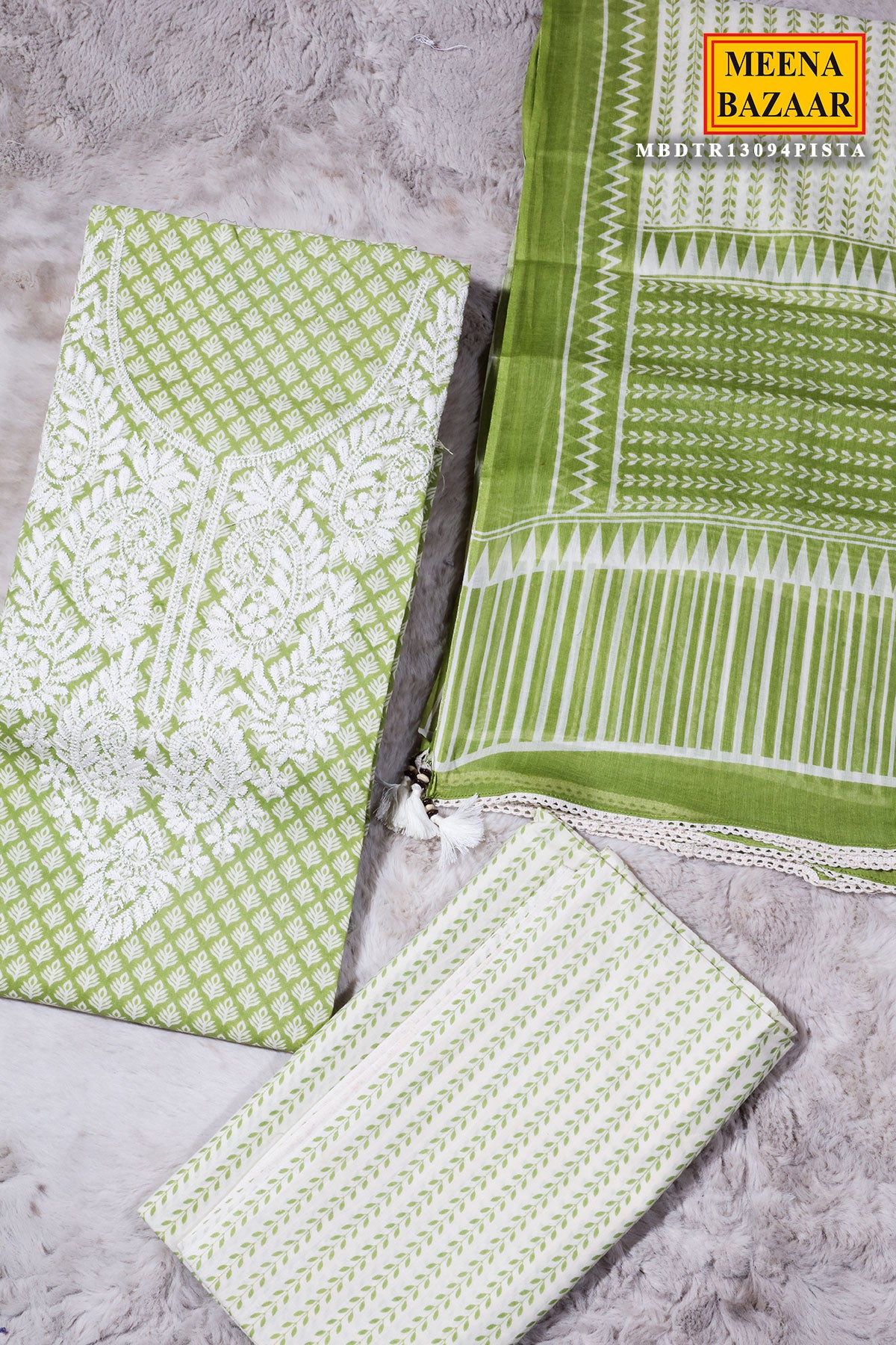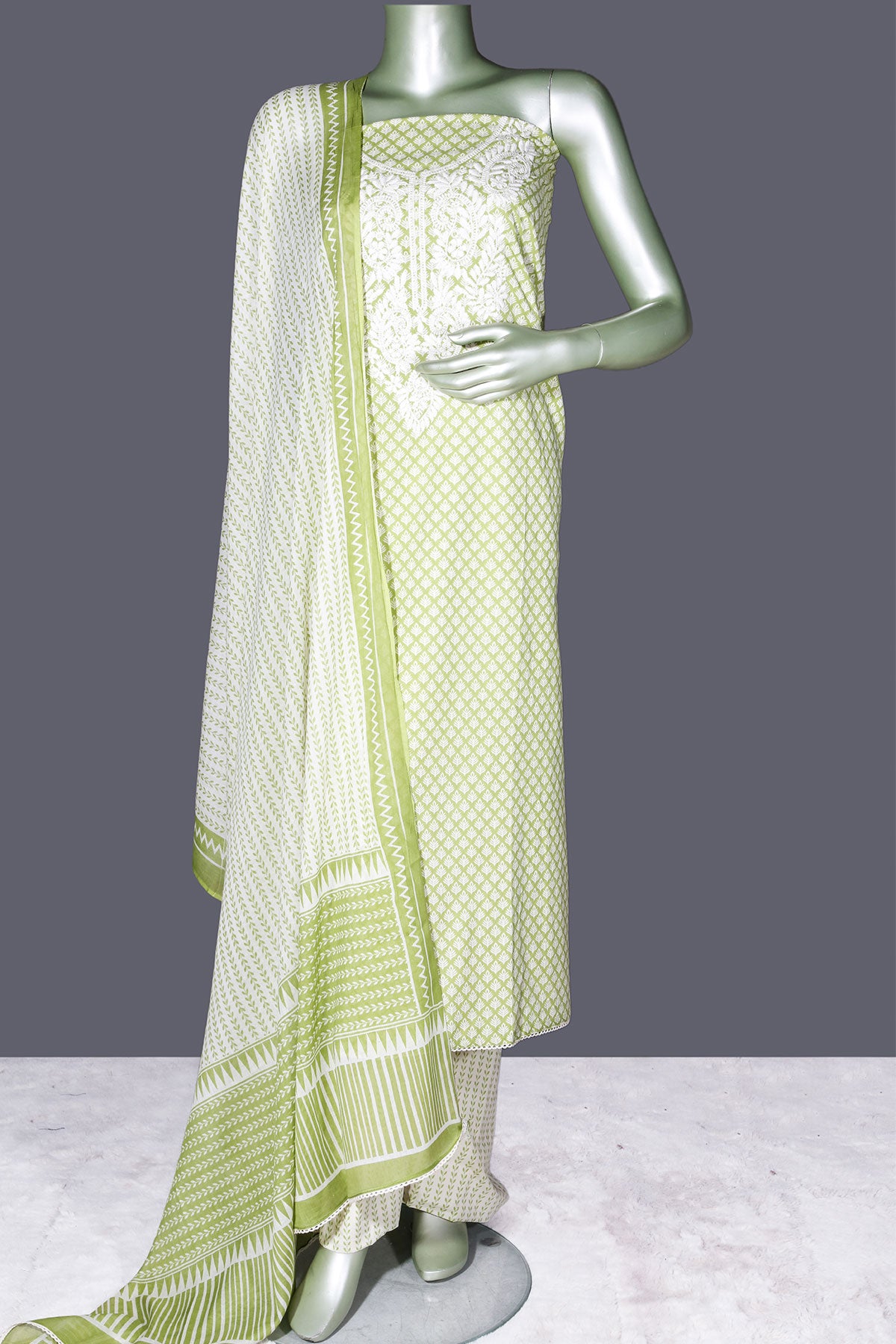Add a refreshing touch to your ethnic collection with this luxurious Pista Cotton Unstitched Suit. Crafted from breathable cotton fabric, this ensemble offers comfort along with timeless elegance. The delicate embroidery work enhances the subtle pista shade, creating a graceful and sophisticated look perfect for everyday elegance or light festive occasions.