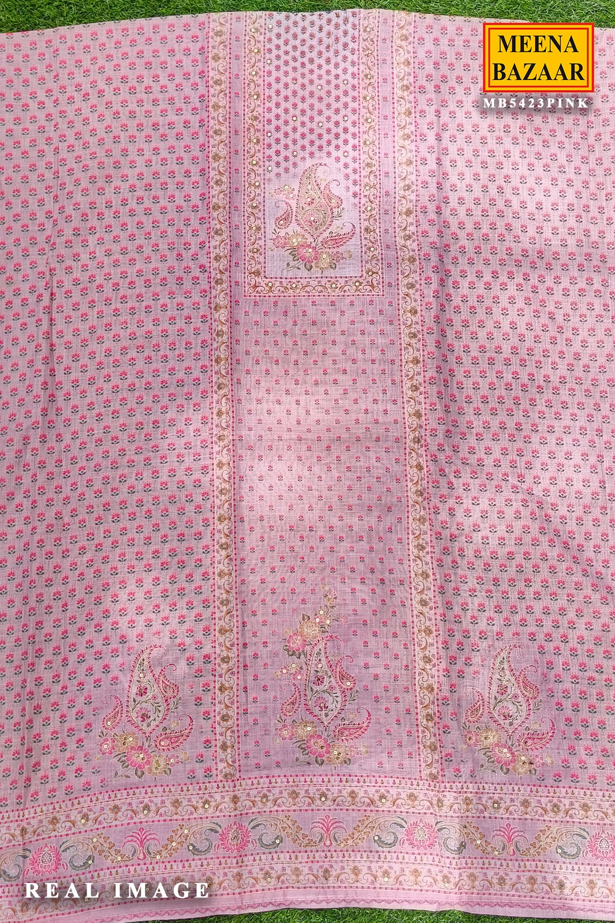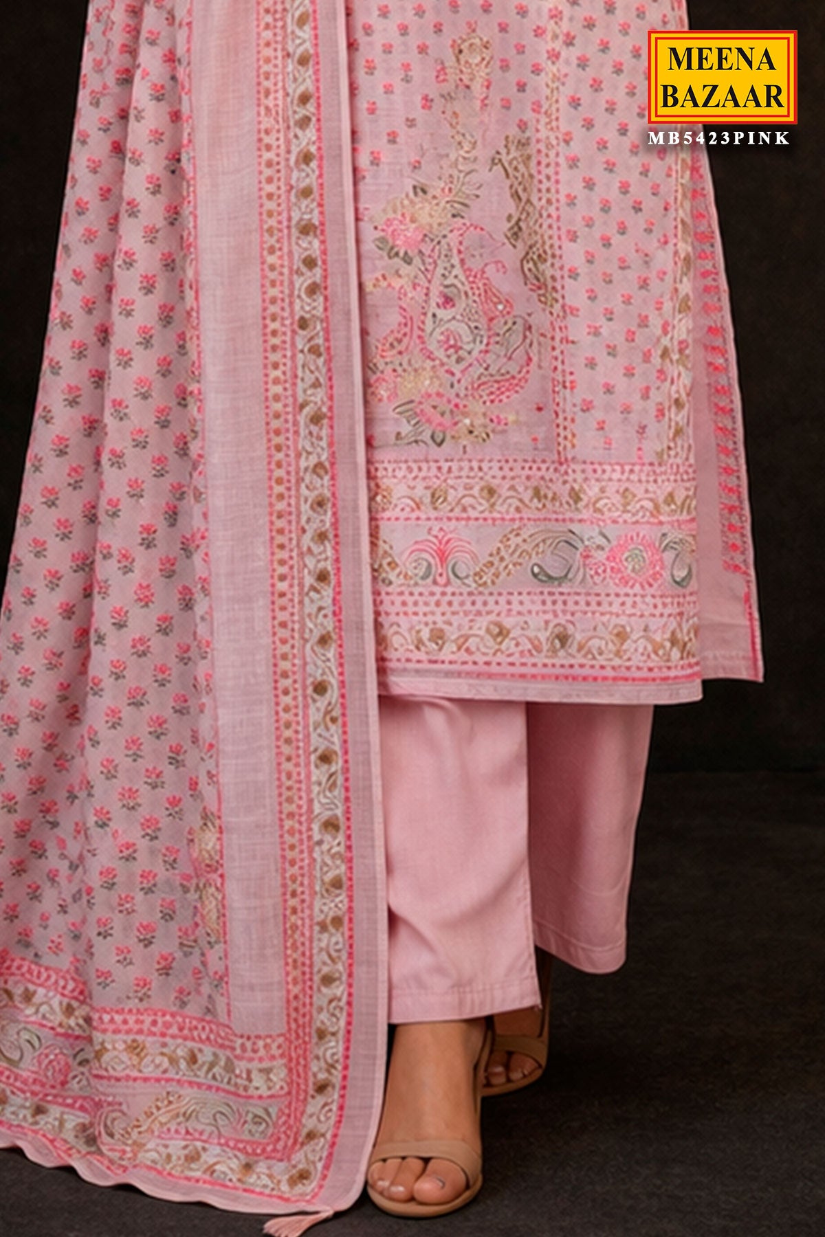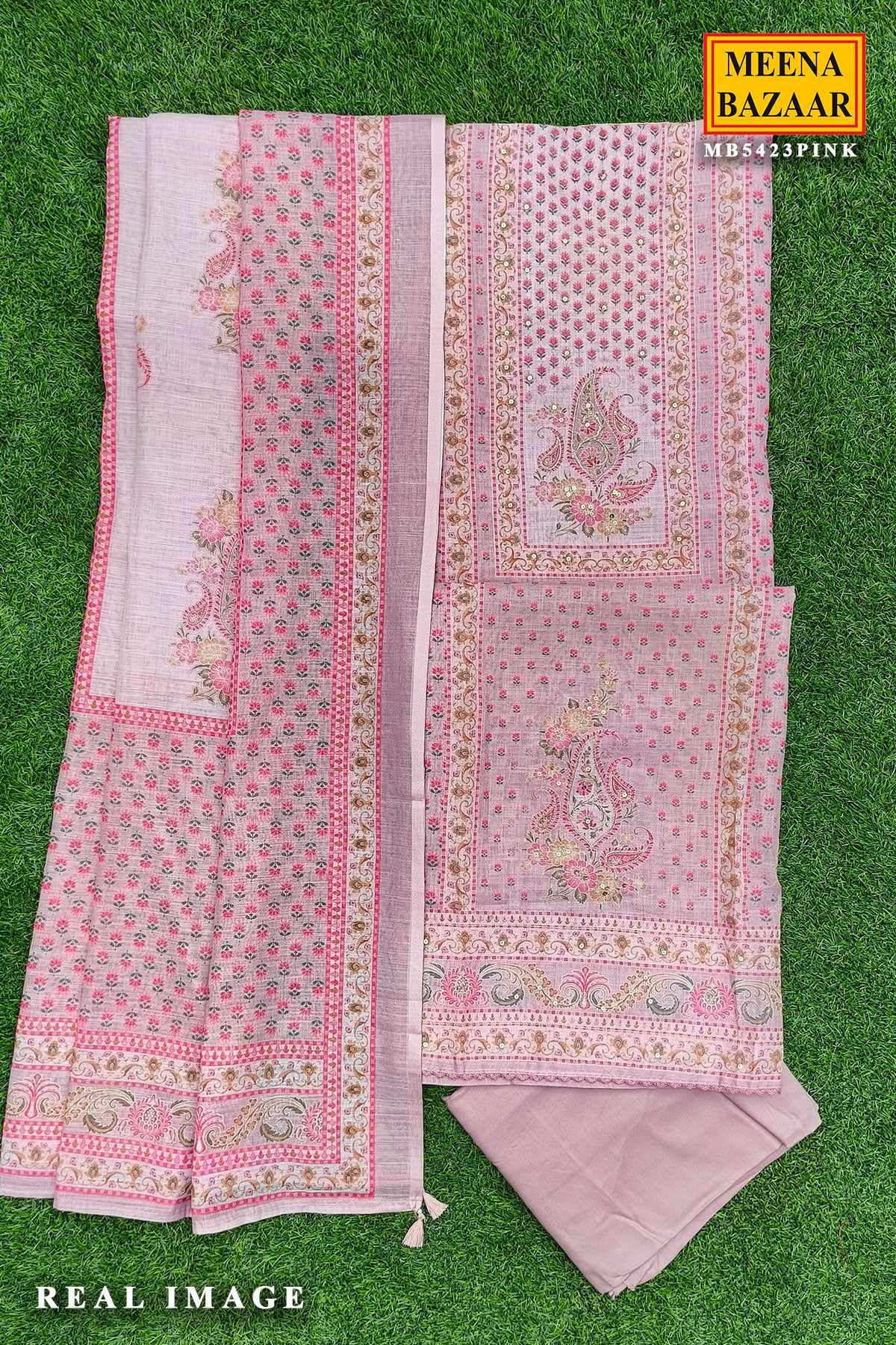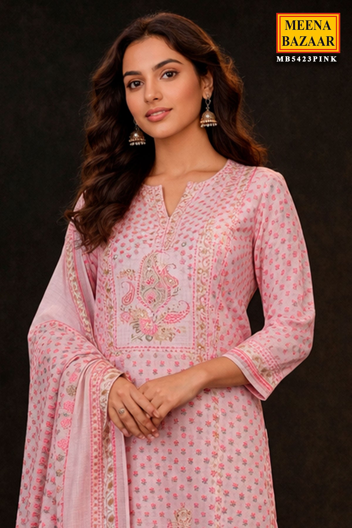 Poise Pink Suit Set with Intricate Paisley Design