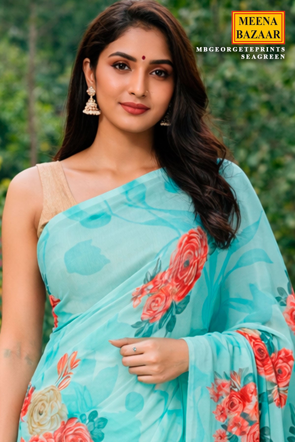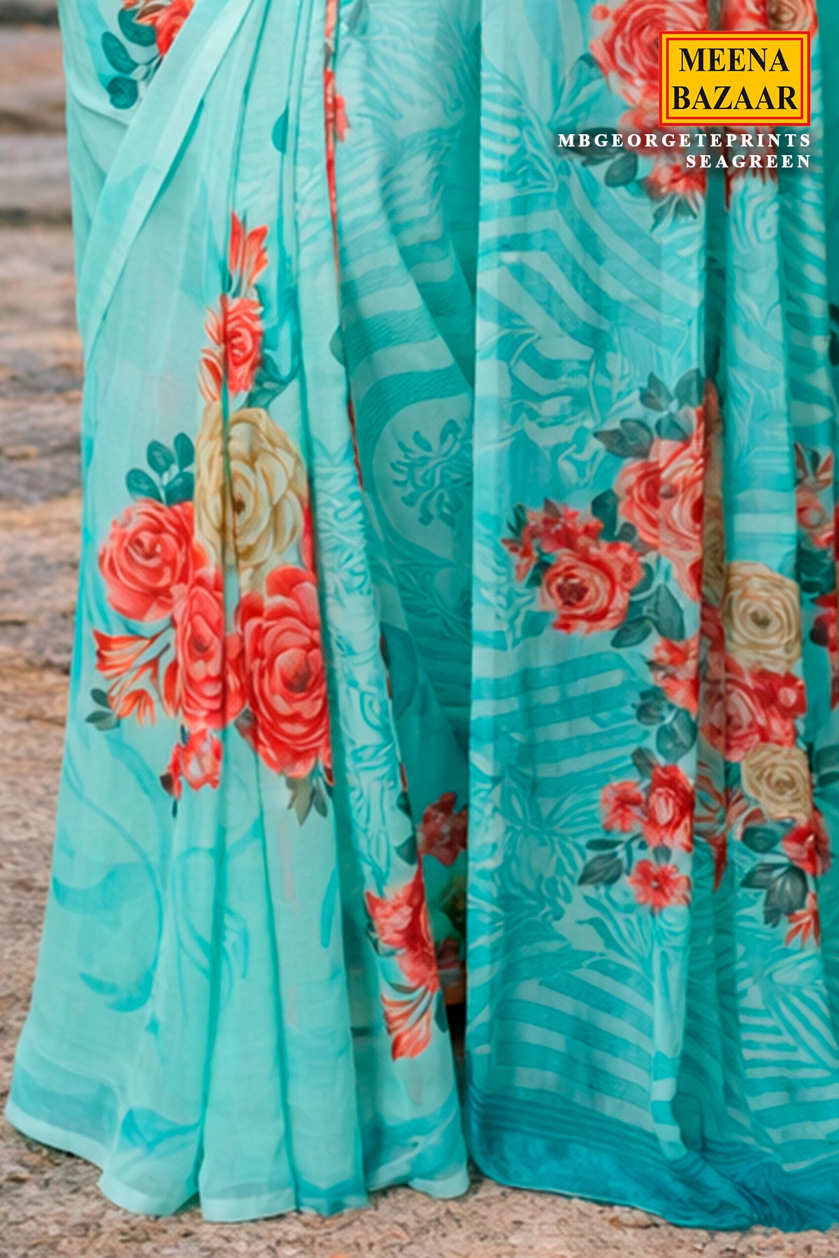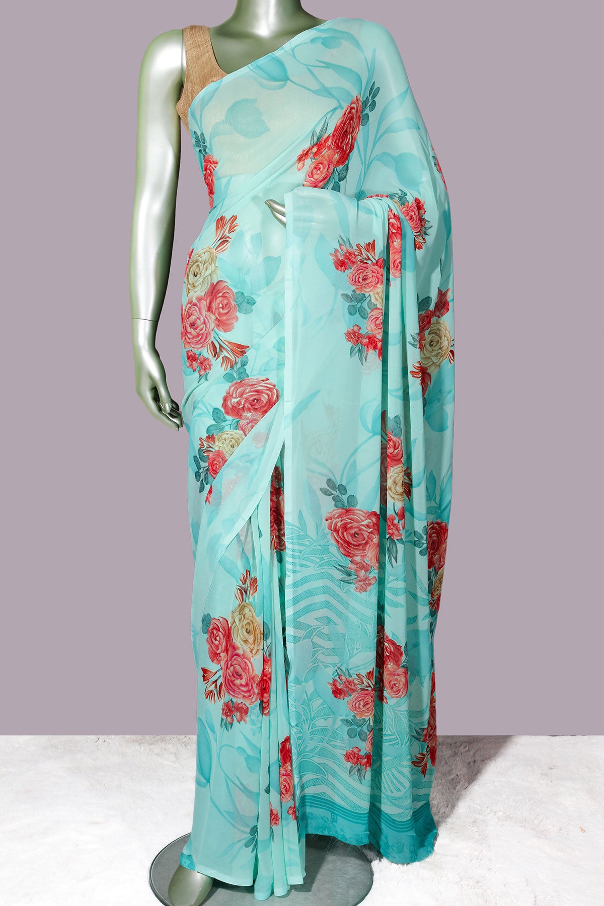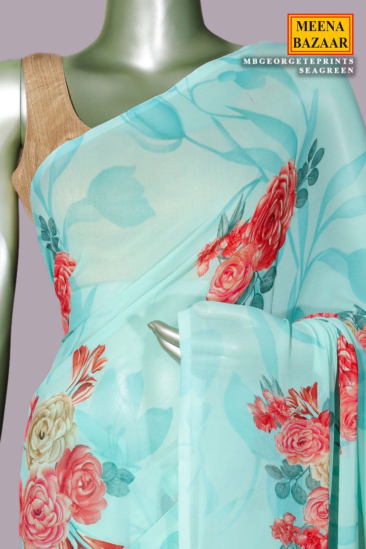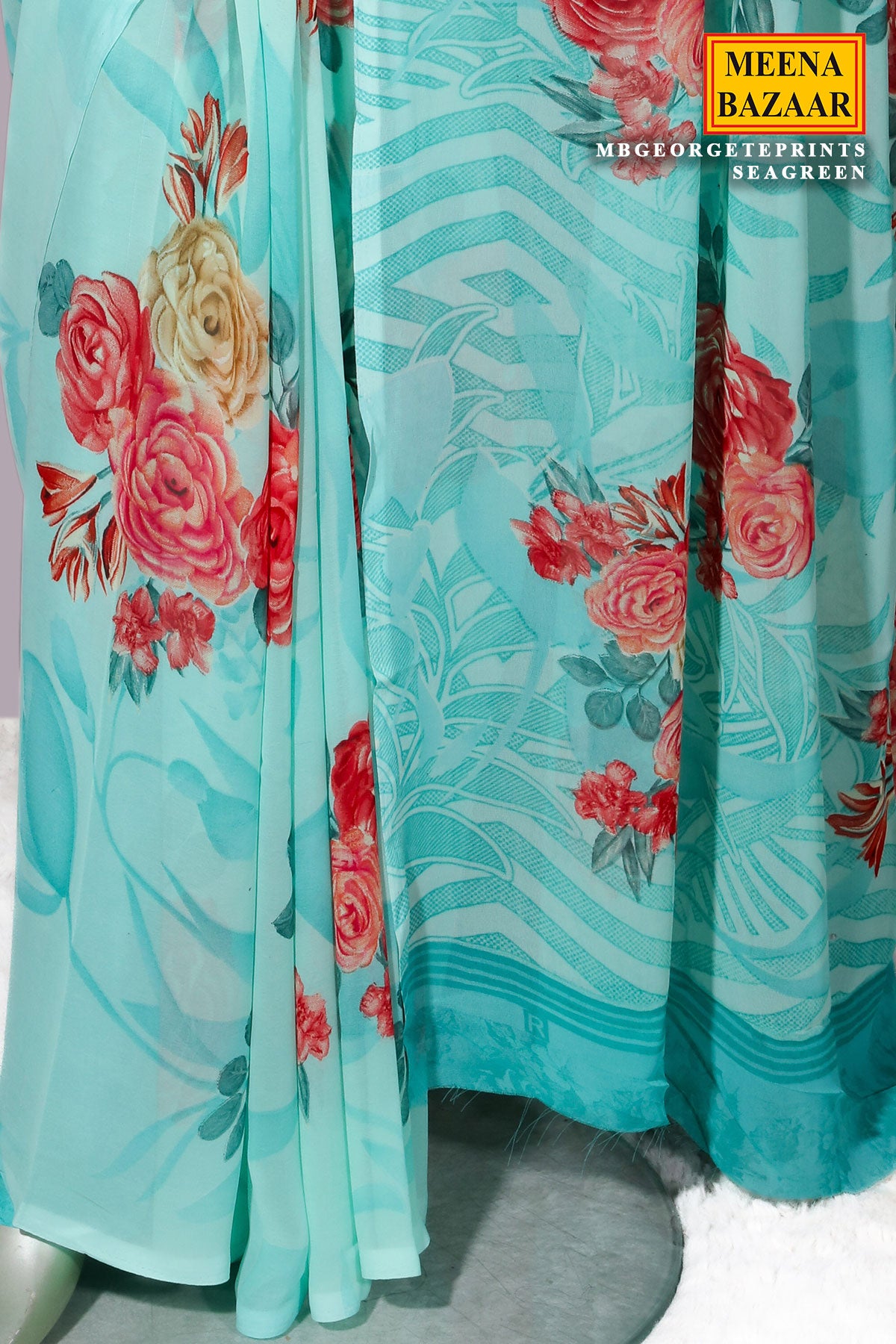 Sea Green Georgette Saree Elegant Printed Detailing