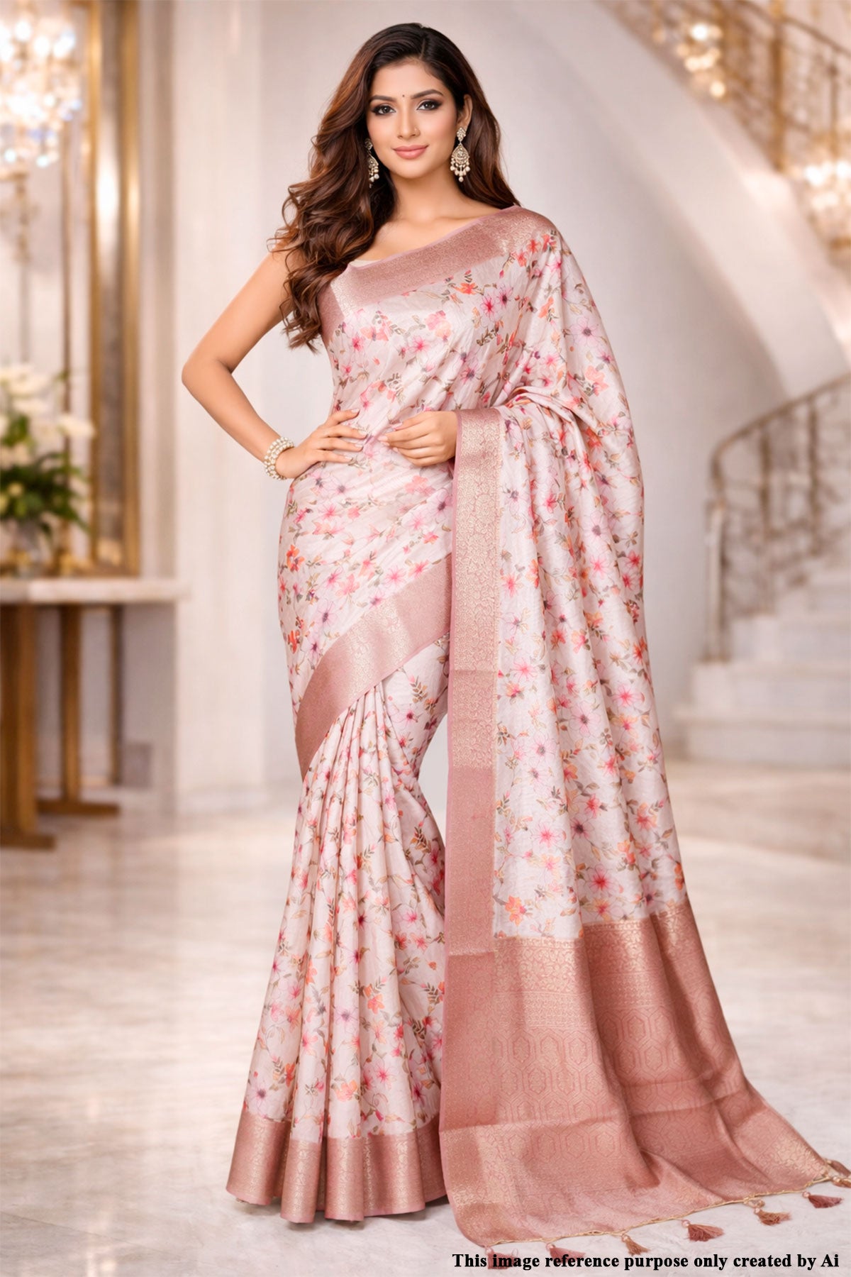Made from premium cotton fabric, this saree ensures all-day comfort while maintaining a rich, structured drape that flatters every silhouette. The intricate floral patterns add a refreshing and feminine vibe, making it an ideal choice for daytime gatherings, festive occasions, or elegant casual wear.