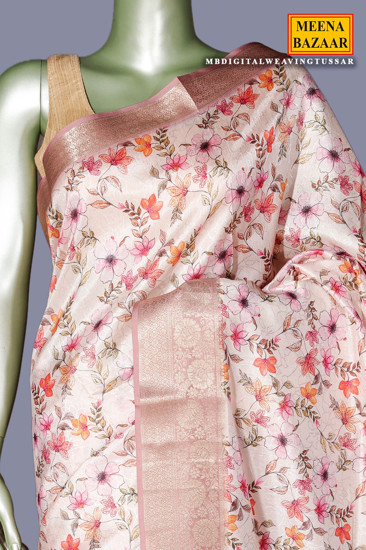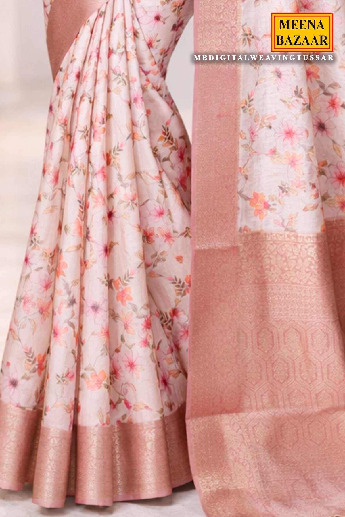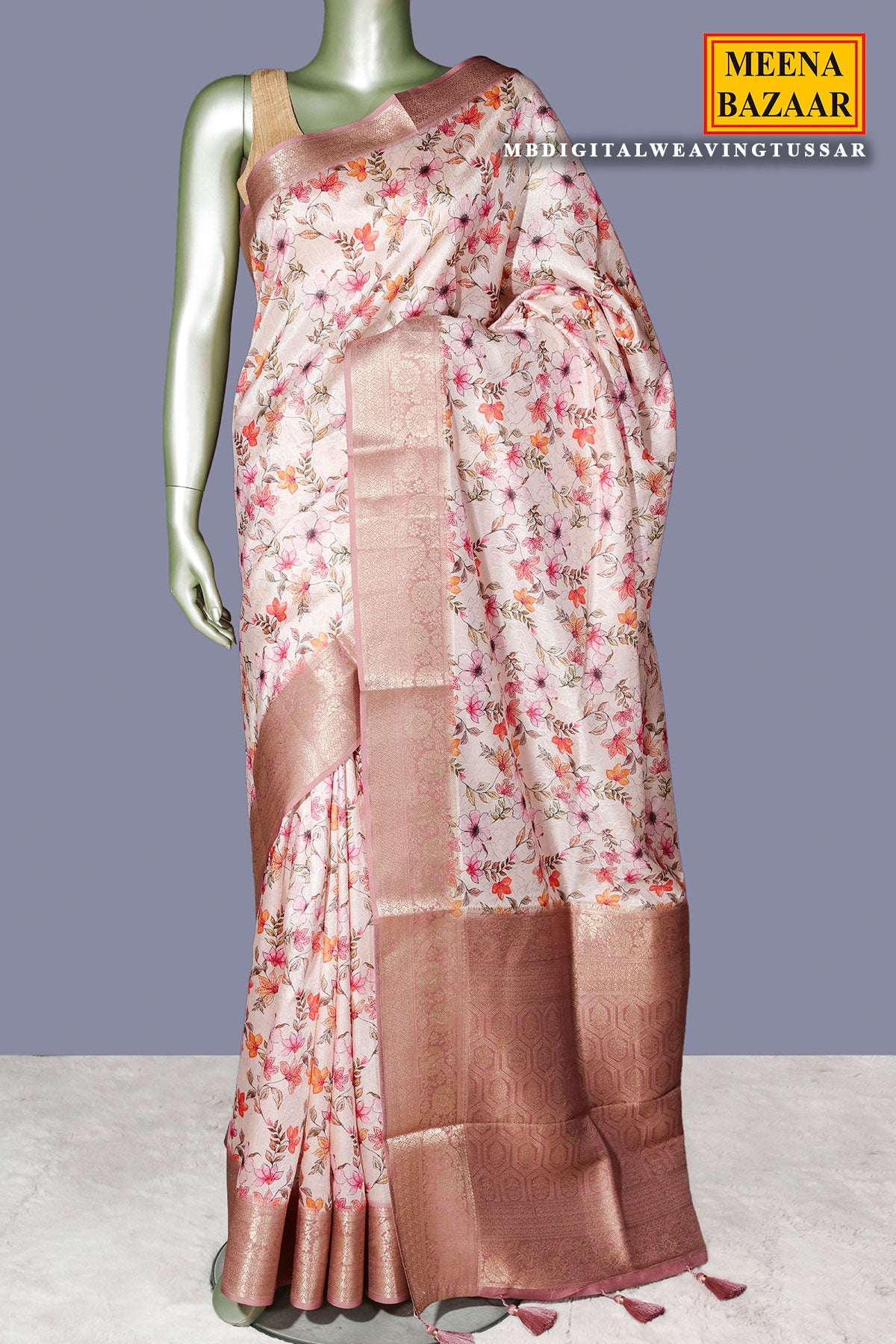 Tussar Cotton Saree with Multicolor Floral Print