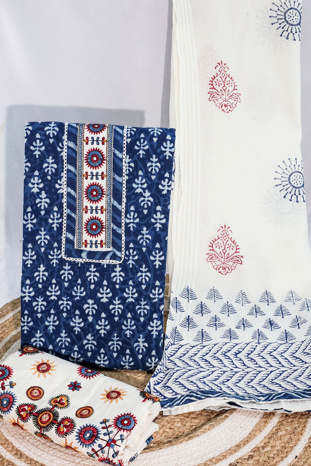 Design a fresh and stylish ethnic look with this blue cotton unstitched suit, crafted from soft and breathable cotton for all-day comfort. The fabric features a beautiful printed pattern, adding a modern and vibrant touch to the soothing blue shade. Perfect for stitching into daily wear, office outfits, or casual festive ensembles, this unstitched set gives you complete freedom to customize the fit and style to your preference. A versatile and charming choice for any wardrobe.