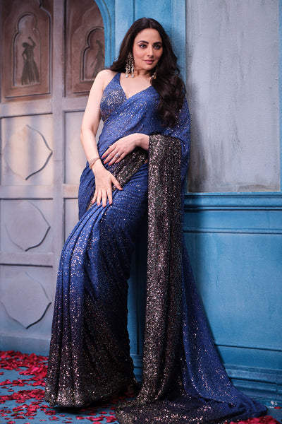 Drape yourself in elegance with this exquisite Bottle Green Georgette Colourful Thread Embroidered Saree. The drape is beautifully adorned with vibrant thread embroidery all over the length that adds a pop of color to its rich hue, making it more eye-captivating. The intricate detailing, embellished with golden Swarovski, exudes a timeless charm, further adding to the aesthetic appeal. Style Tip: Pair this ensemble with statement golden jewellery for a regal touch, perfect for any special occasion.
