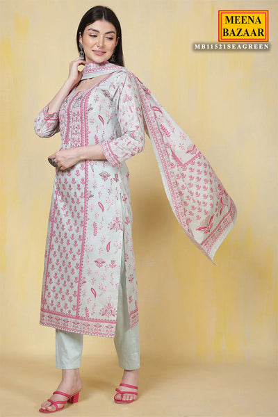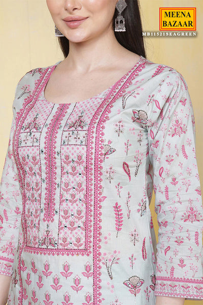Light Blue Cotton Printed Straight Suit Set With Dupatta