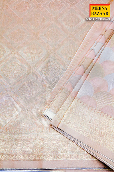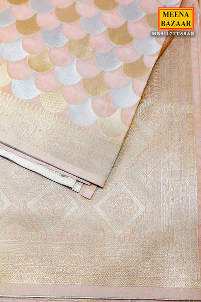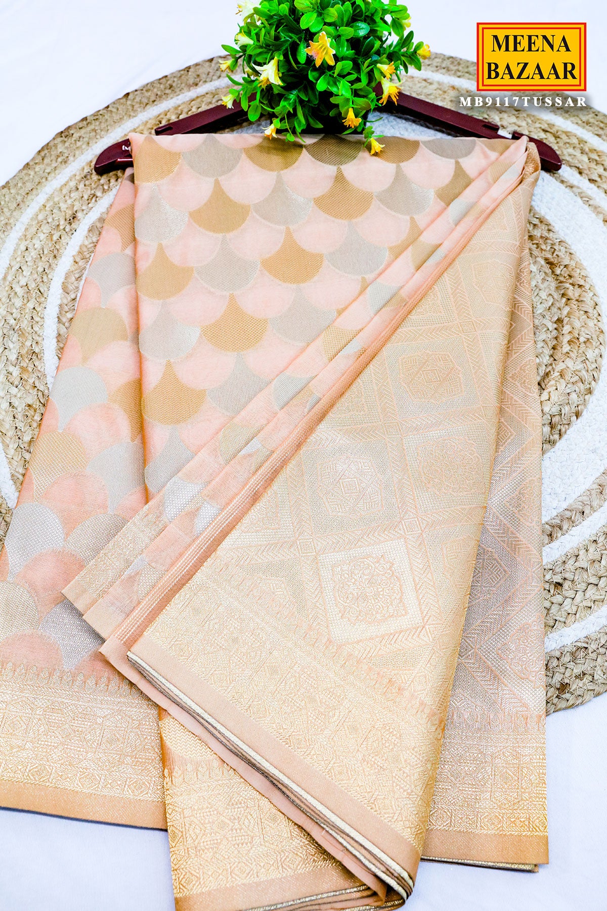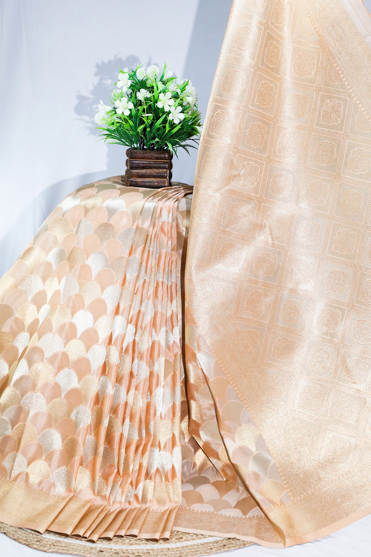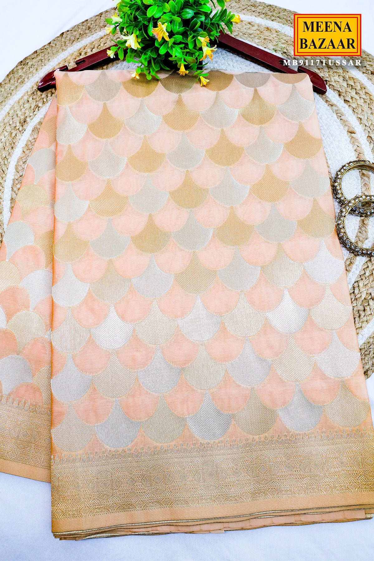 Get the right fashion wings for the next get together, attending ceremonies or welcoming new beginnings. Curated with pure love by Indian artisans, this festive Light Peach Silk Zari Weaving Saree will definitely keep your look a trending one. The soft zari blocks on the overall piece makes this saree an apt party wear stuff. Note: Color may slightly be different from the actual item due to photographic lighting sources or the monitor's settings.