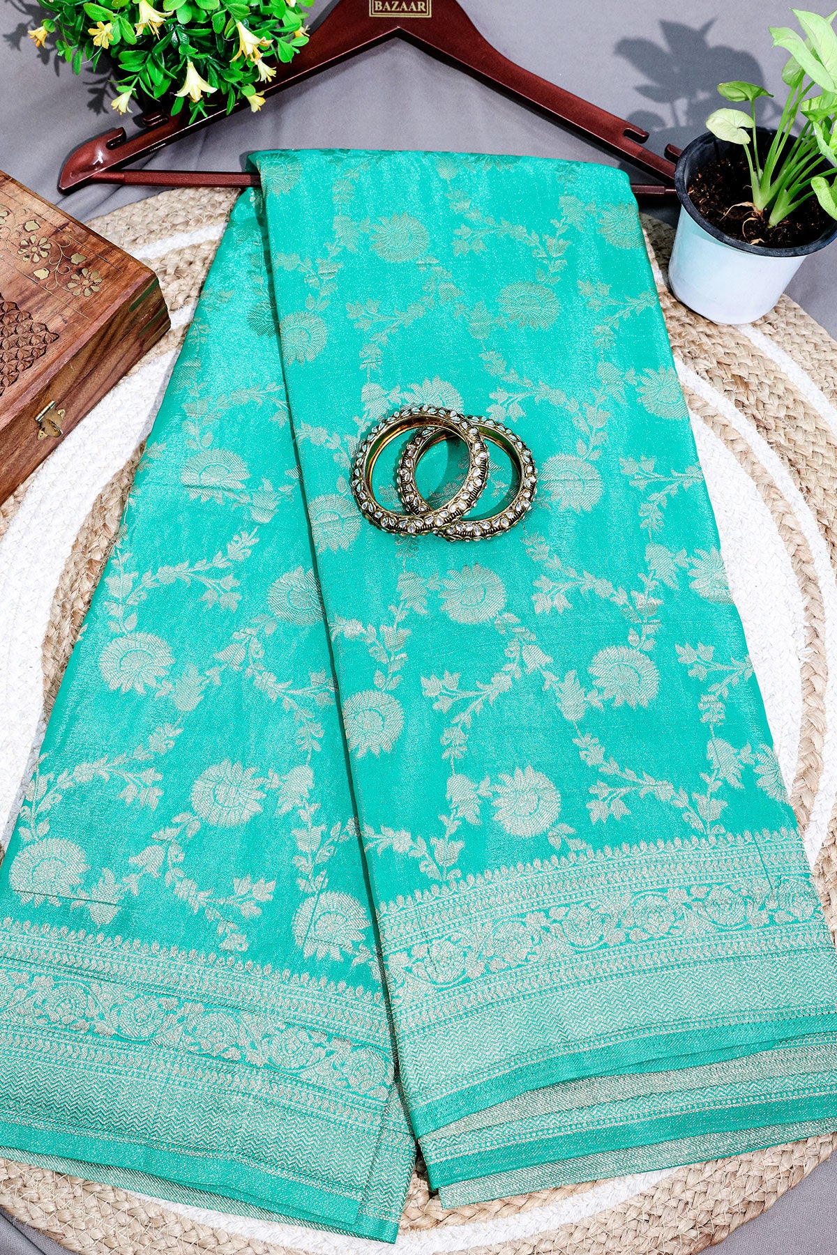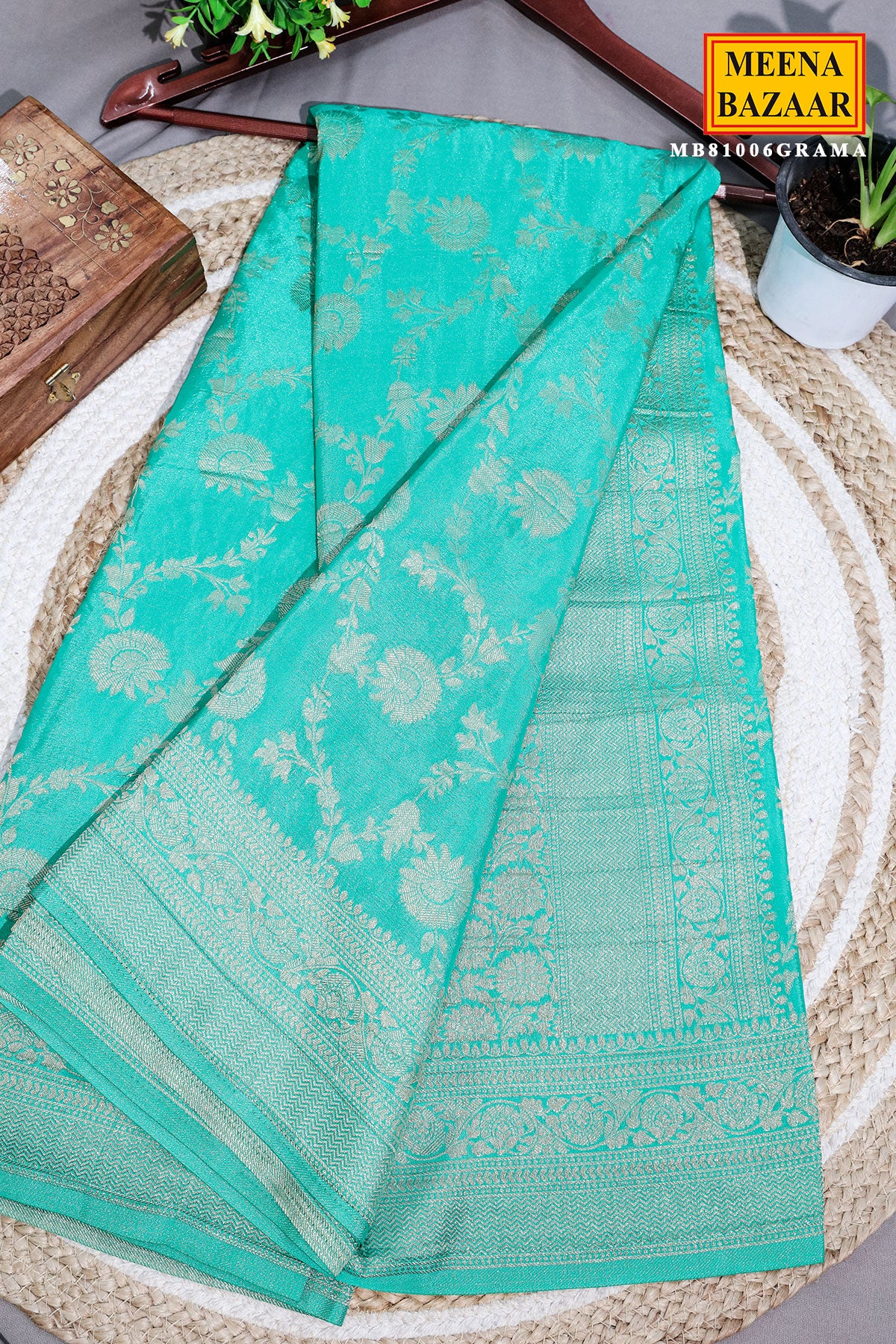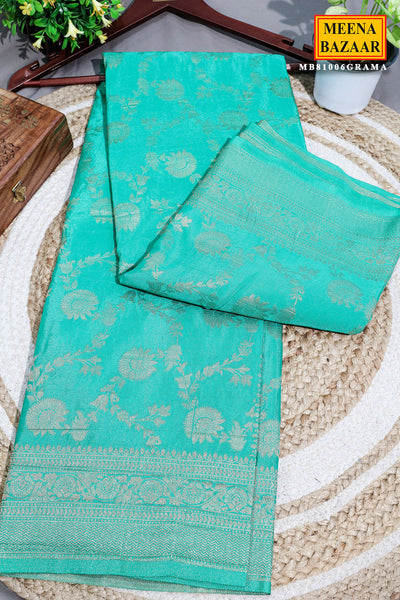 Infuse your ethnic wardrobe with elegance through the captivating Rama Khaddi Georgette Zari Woven Saree—a seamless blend of tradition and contemporary sophistication. This exquisite creation effortlessly merges heritage craftsmanship with modern aesthetics, making it an epitome of timeless beauty. Adorned with delicate floral motifs and a finely woven zari border, the saree is enriched with shimmering zari accents along the pallu and edges, adding an air of opulence. Paired with a matching blouse piece, this ensemble provides versatility in styling, allowing you to craft a distinctive look that reflects your unique personality and refined taste. Note: Color may slightly be different from the actual item due to photographic lighting sources or the monitor's settings.